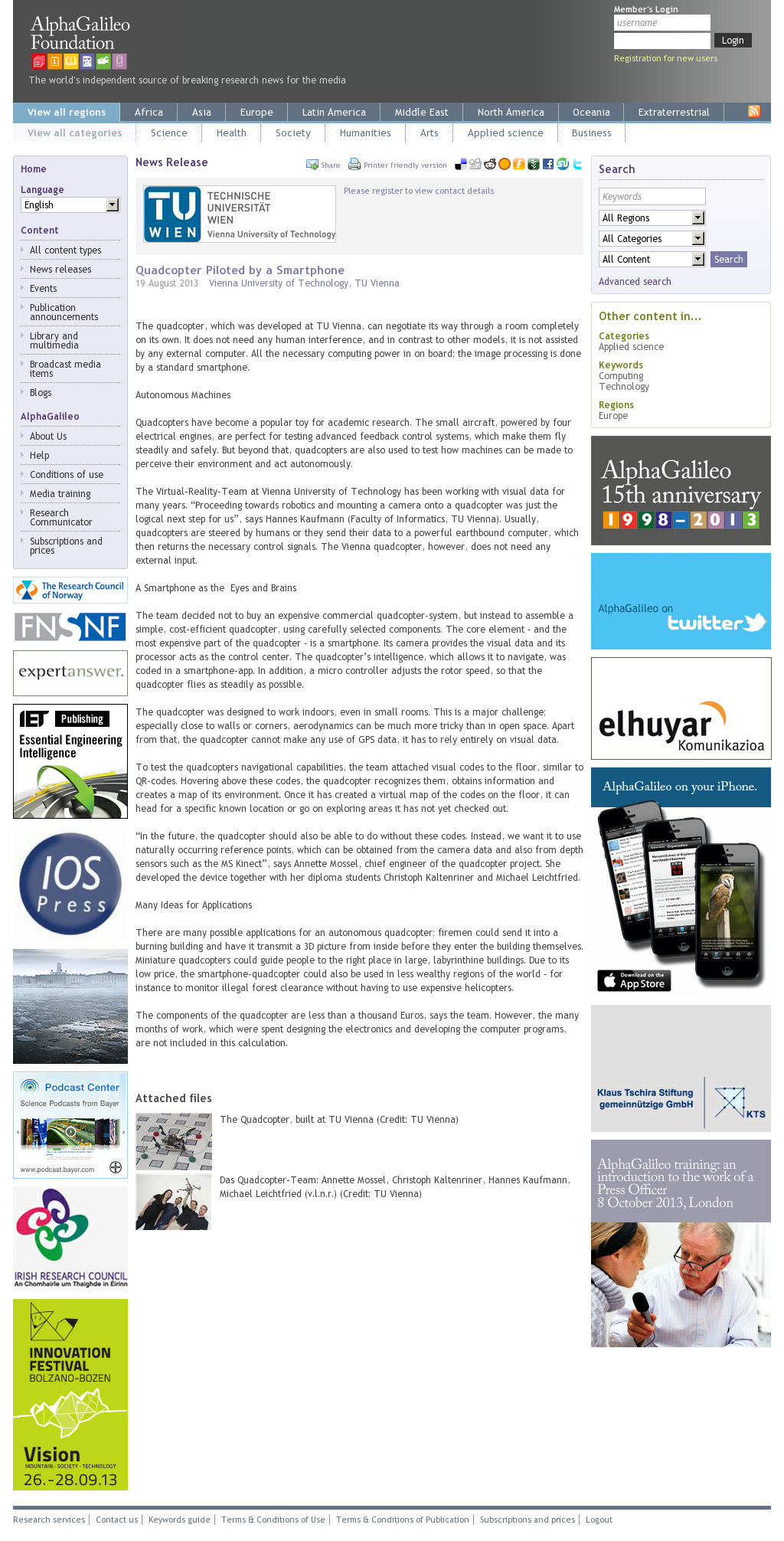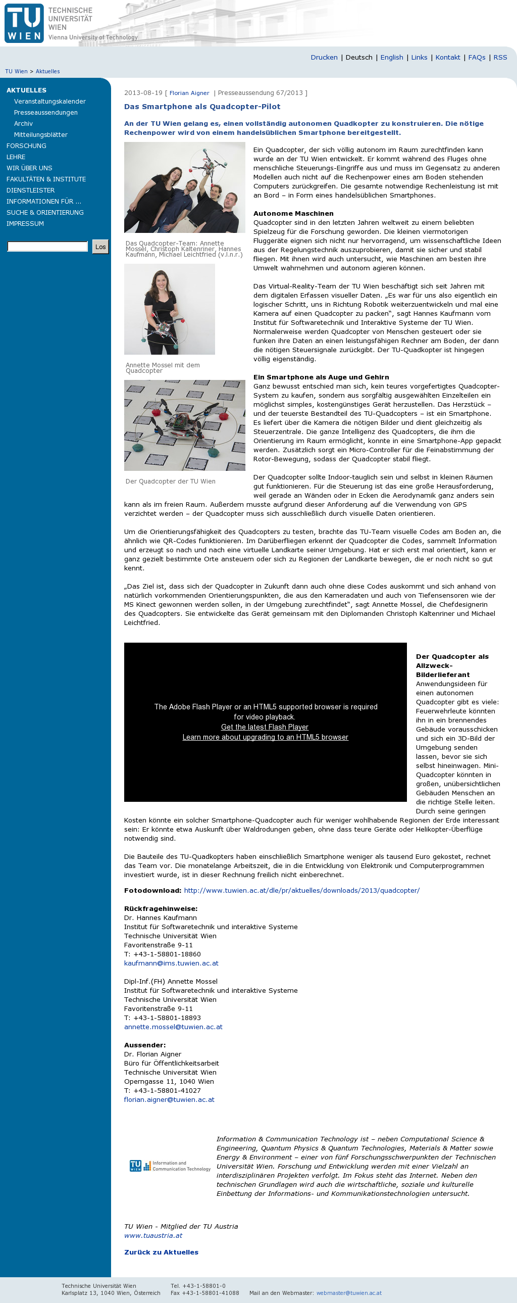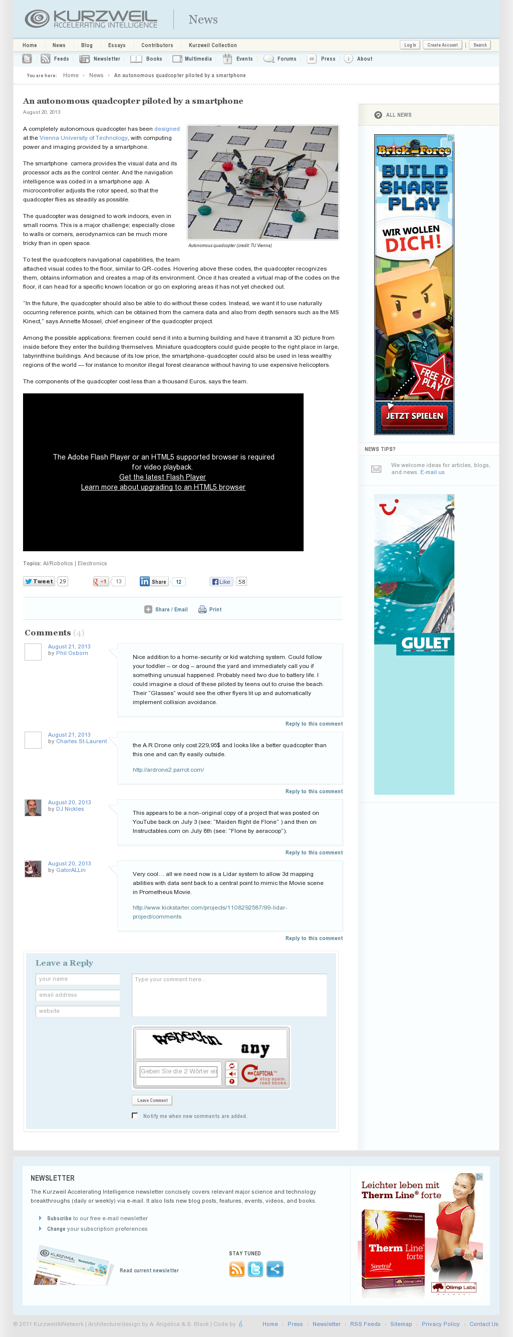 | REUTERS TV | Autonomous quadcopter takes humans out of flying equation Sep 19, 2013 | SmartCopter | Screenshot |