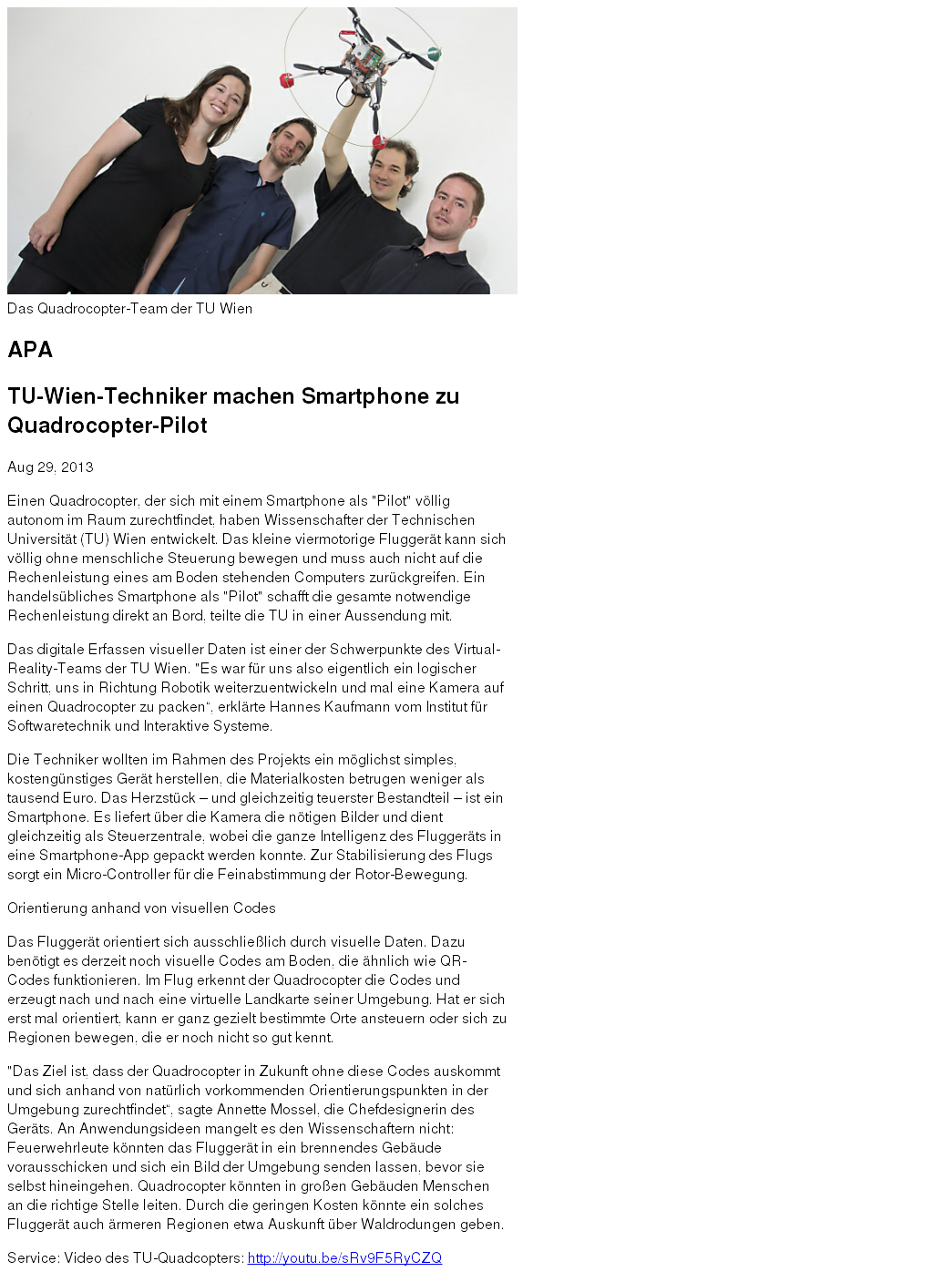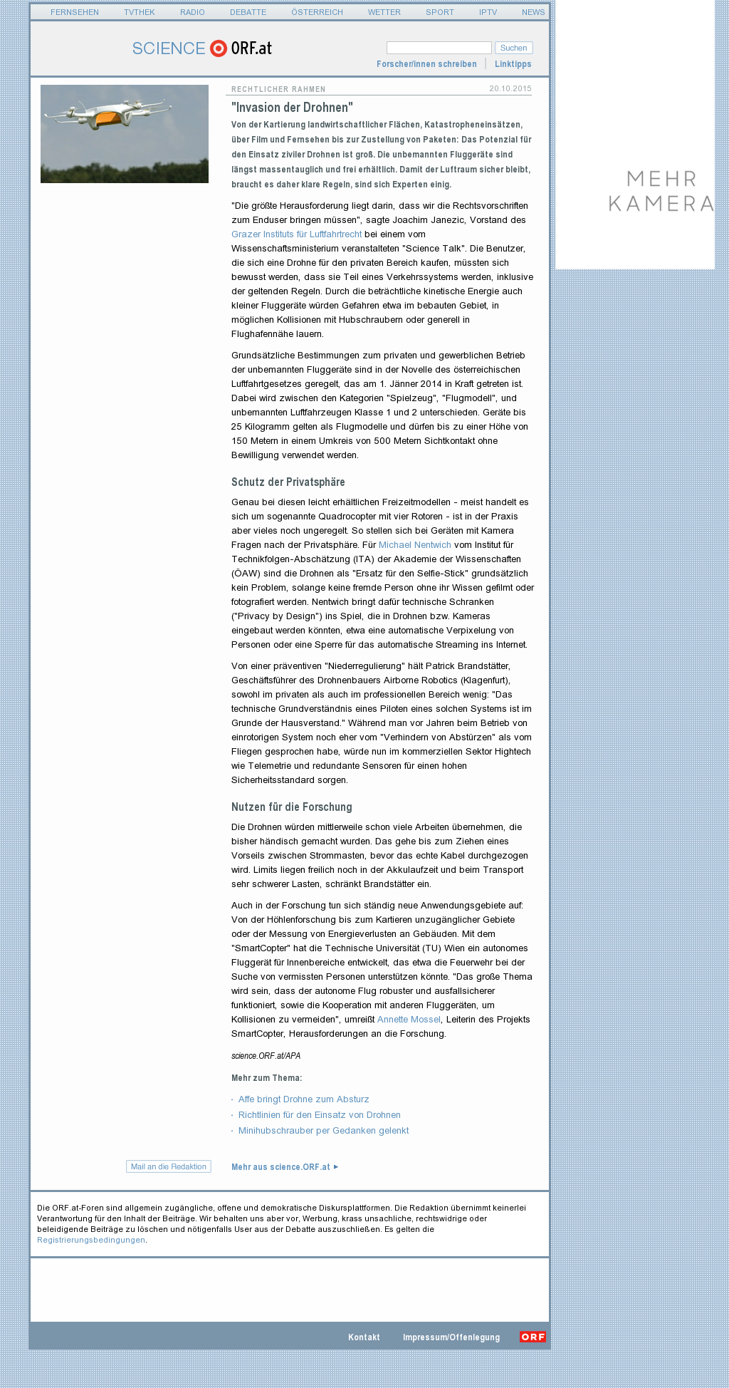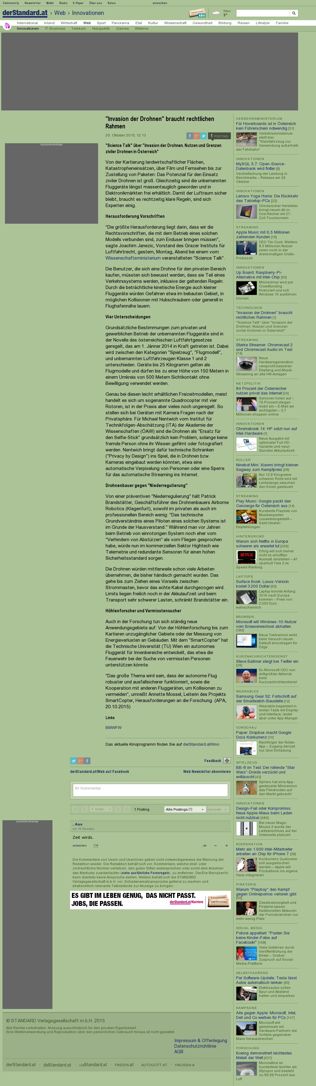 | Der Standard (Wissenschaft) | Invastion der Drohnen braucht rechtlichen Rahmen Oct 20, 2015 | SmartCopter | Screenshot |