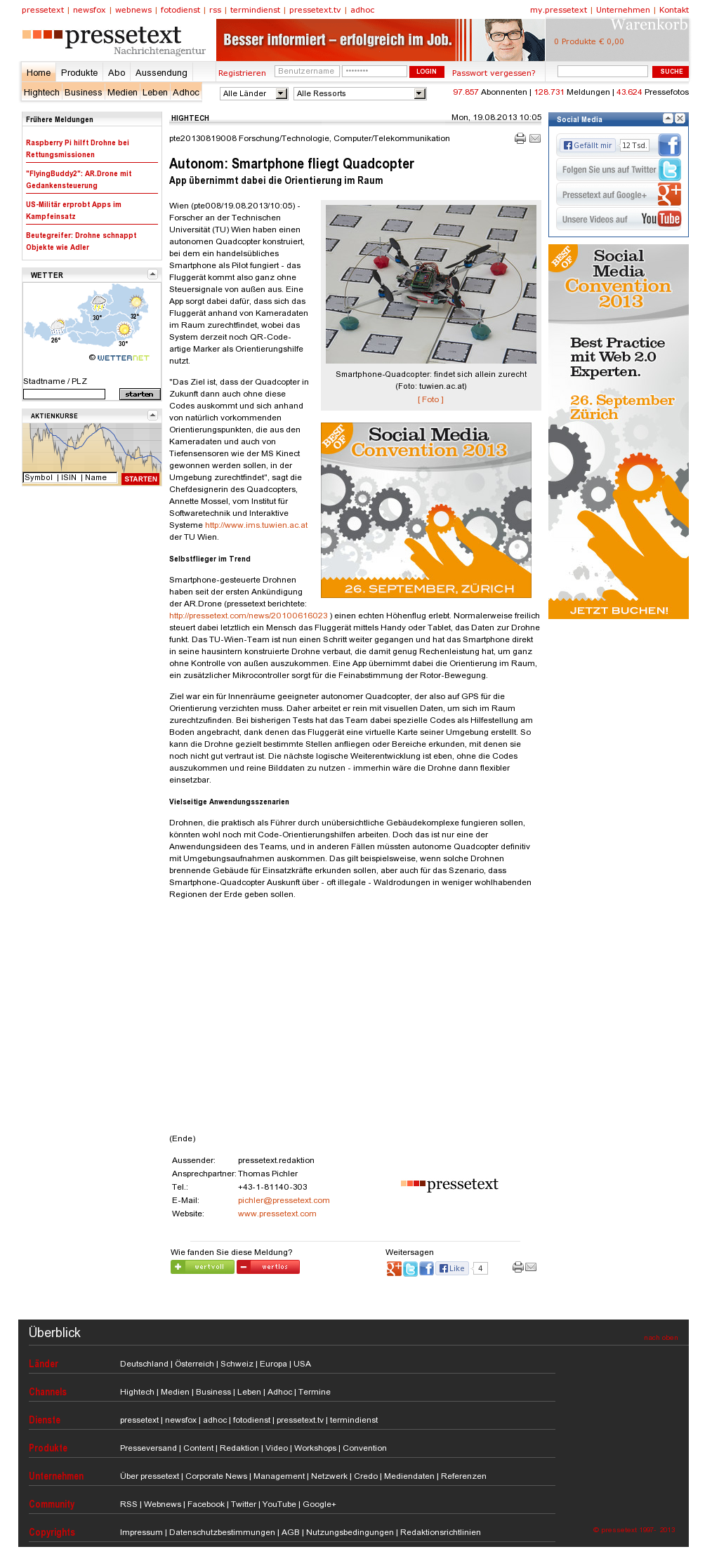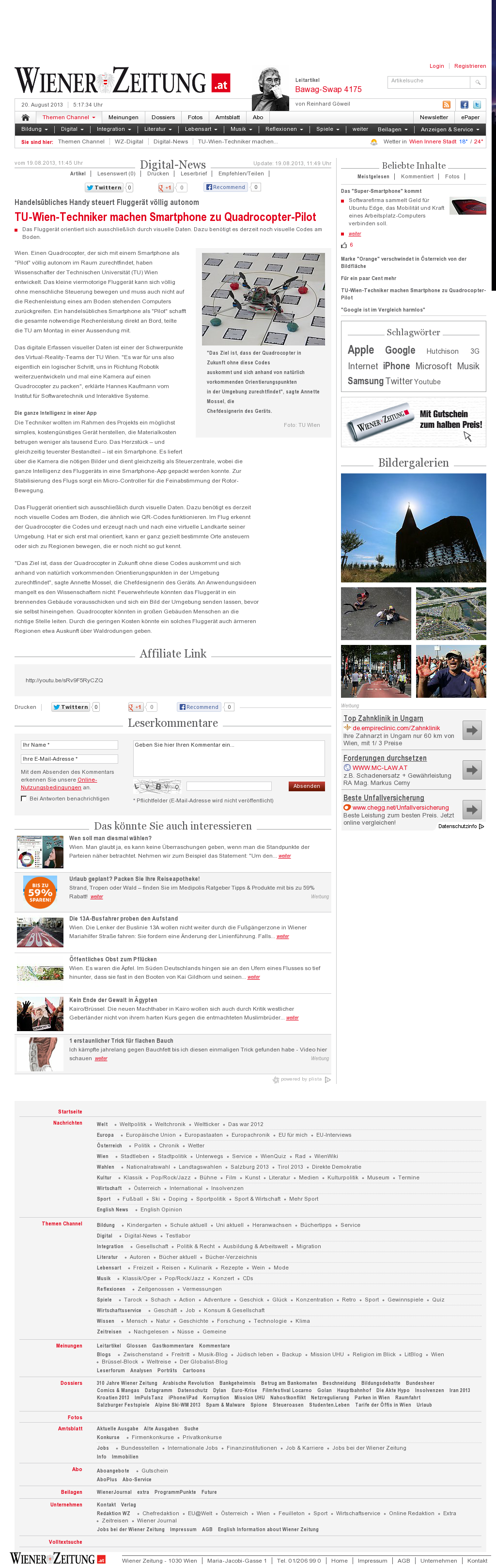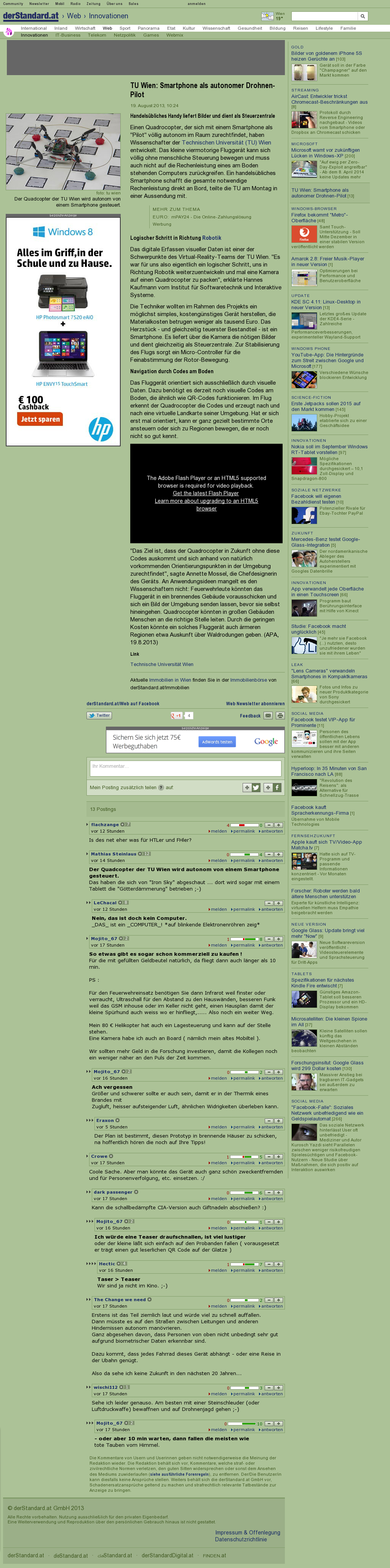 | Der Standard (Wissenschaft) | Invastion der Drohnen braucht rechtlichen Rahmen Oct 20, 2015 | SmartCopter | Screenshot |