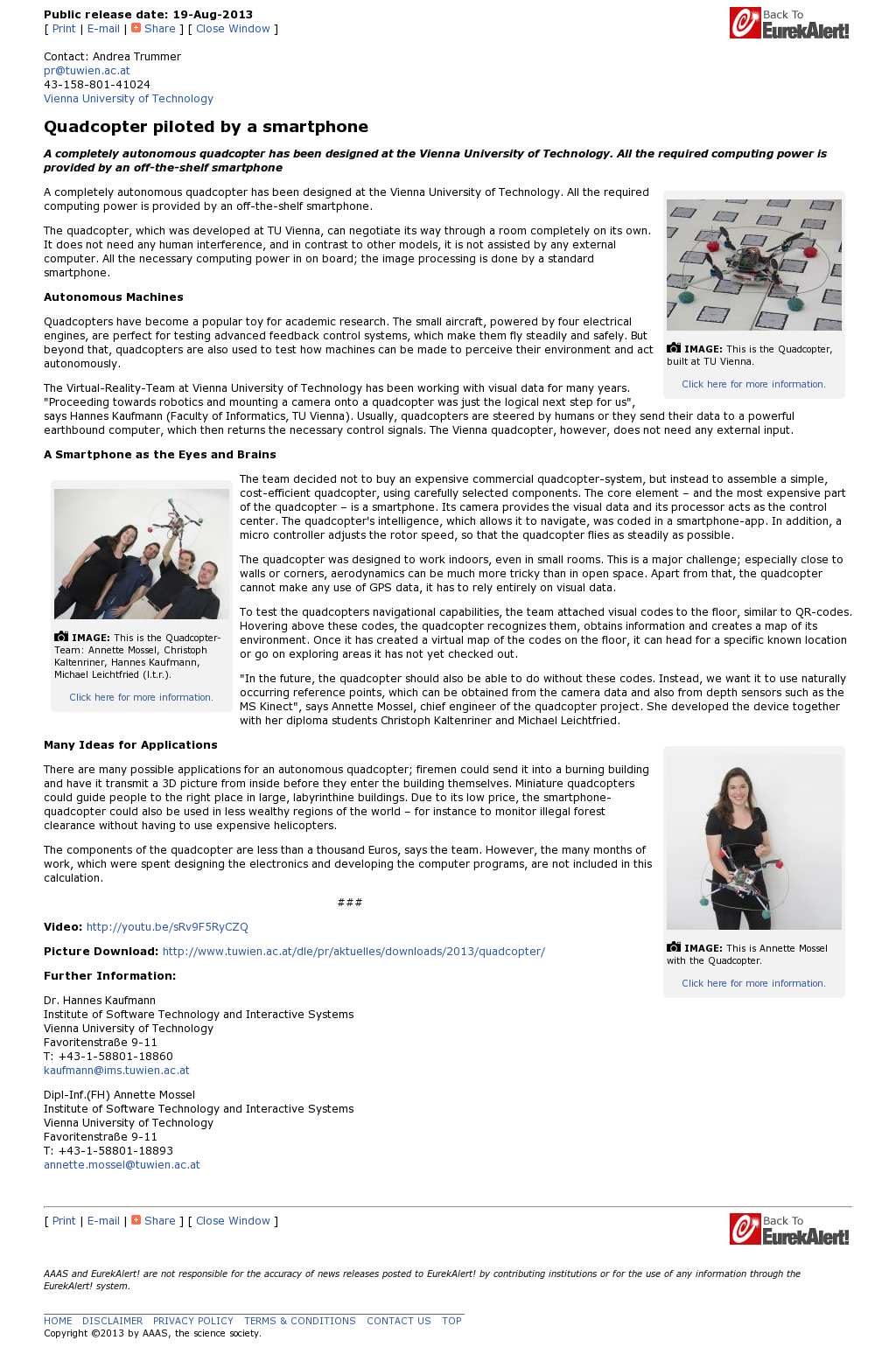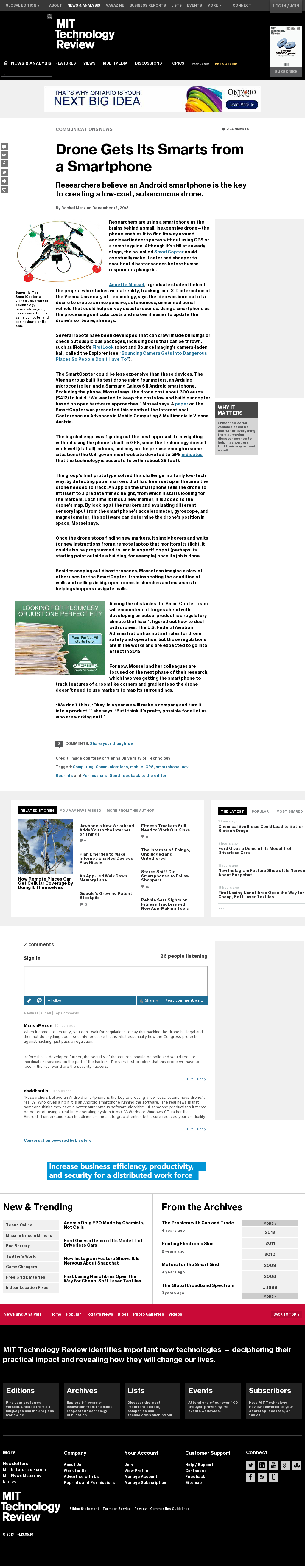 | MIT Technology Review | Drone Gets Its Smarts from a Smartphone Dec 12, 2013 | SmartCopter | Screenshot |