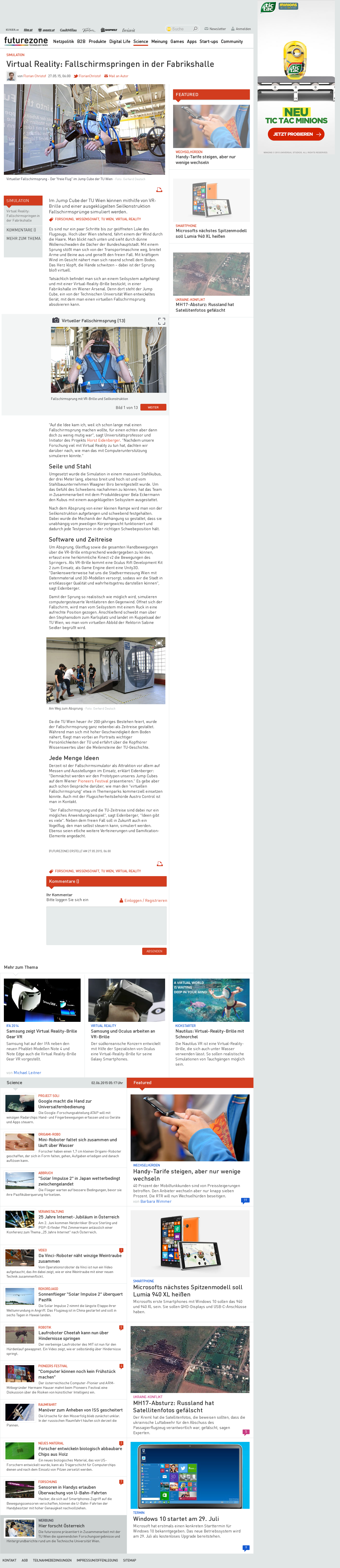 | Futurezone (Kurier) | Virtual Reality: Fallschirmspringen in der Fabrikshalle May 27, 2015 | VirtualJumpSimulator | Screenshot |