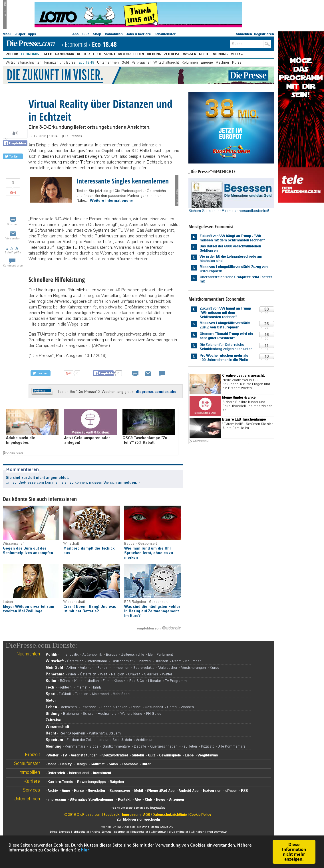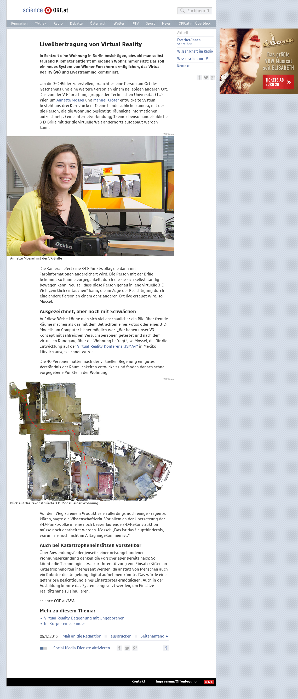| Die Presse | Virtual Reality über Distanzen und in Echtzeit Dec 9, 2016 | ImmersivePointClouds | Screenshot |