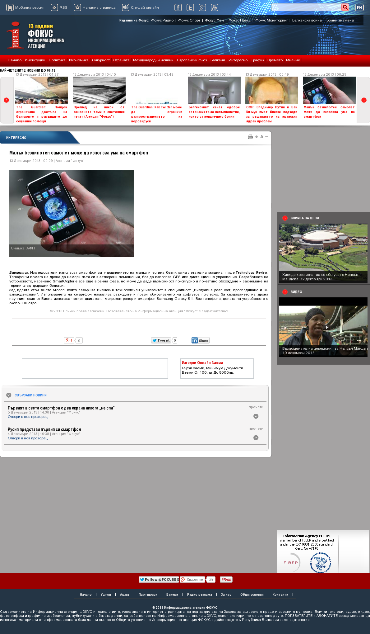 | Focus-News | Малък безпилотен самолет може да използва ума на смартфон Dec 13, 2013 | SmartCopter | Screenshot |