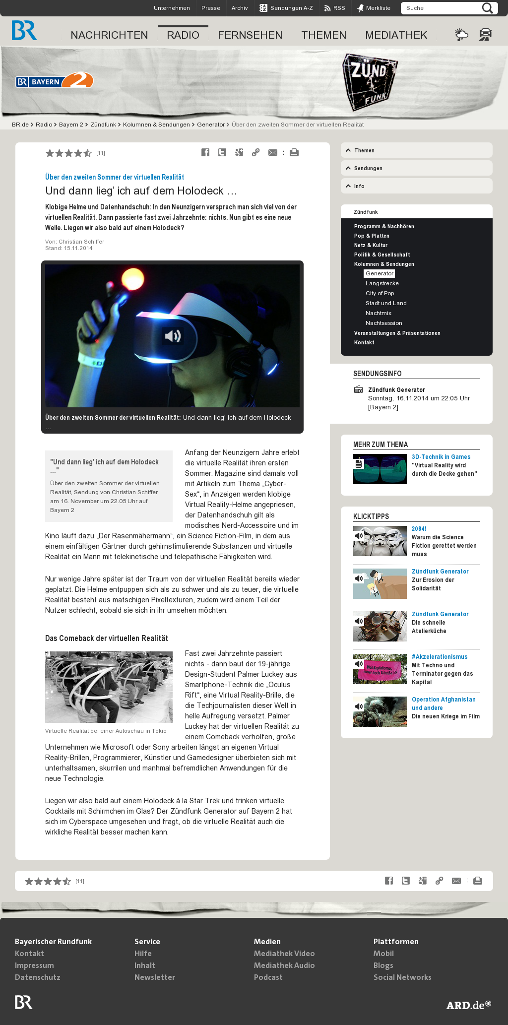| Radio Bayern2 | Und dann lieg’ ich auf dem Holodeck … [Podcast] Nov 15, 2014 | – | Screenshot |