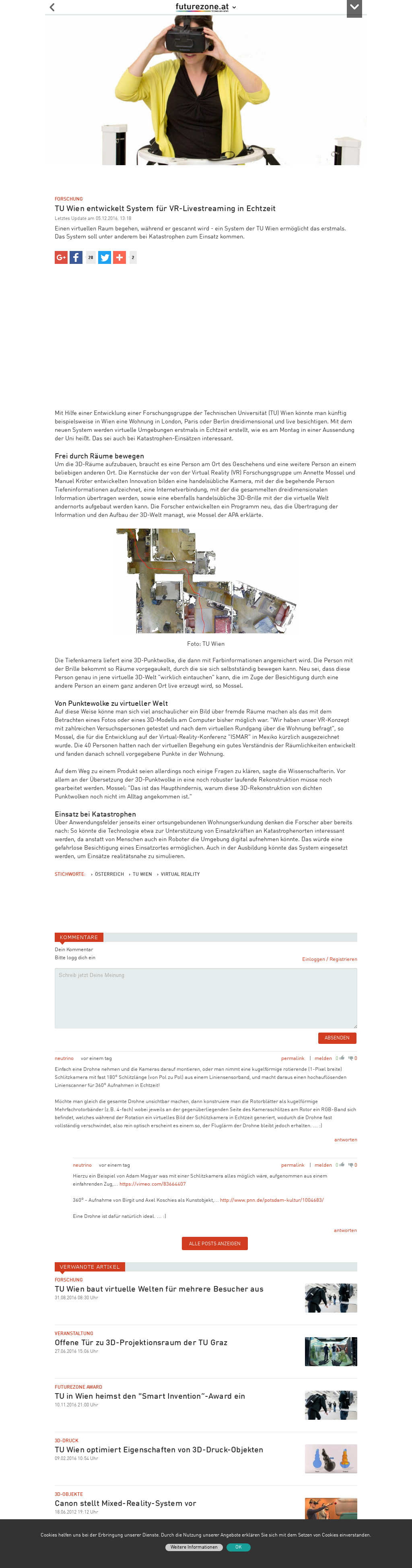 | Futurezone.at | TU Wien entwickelt System für VR-Livestreaming in Echtzeit Dec 6, 2016 | ImmersivePointClouds | Screenshot |