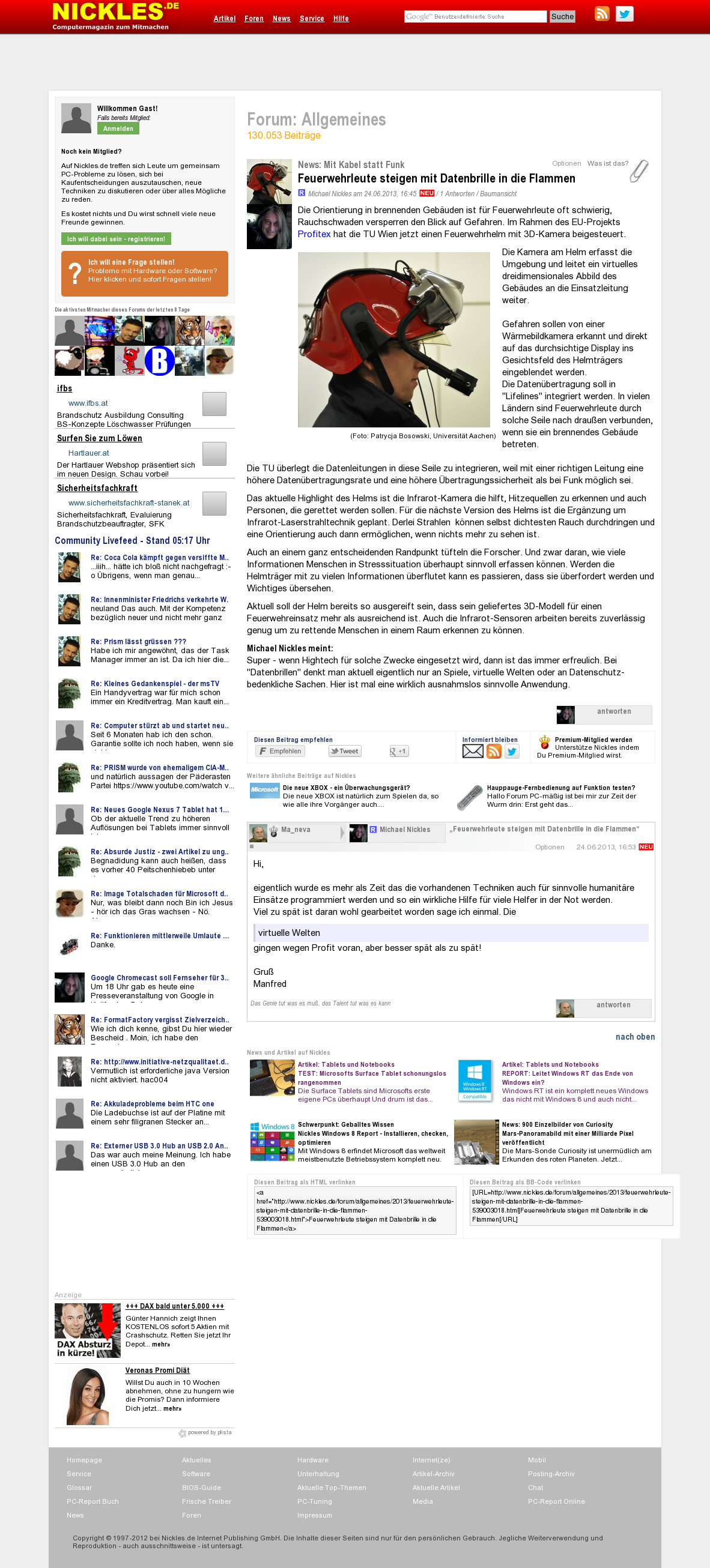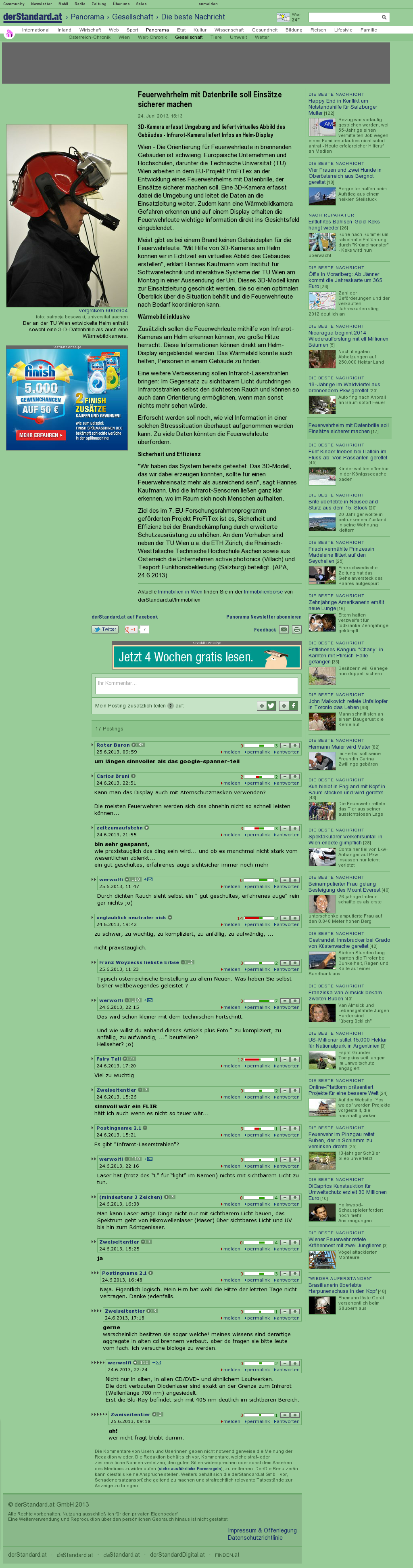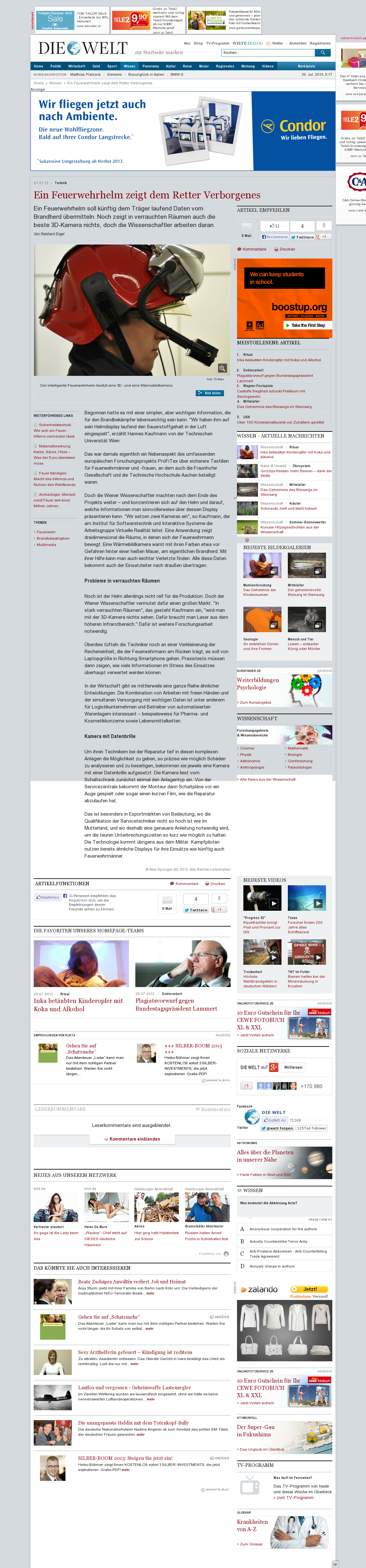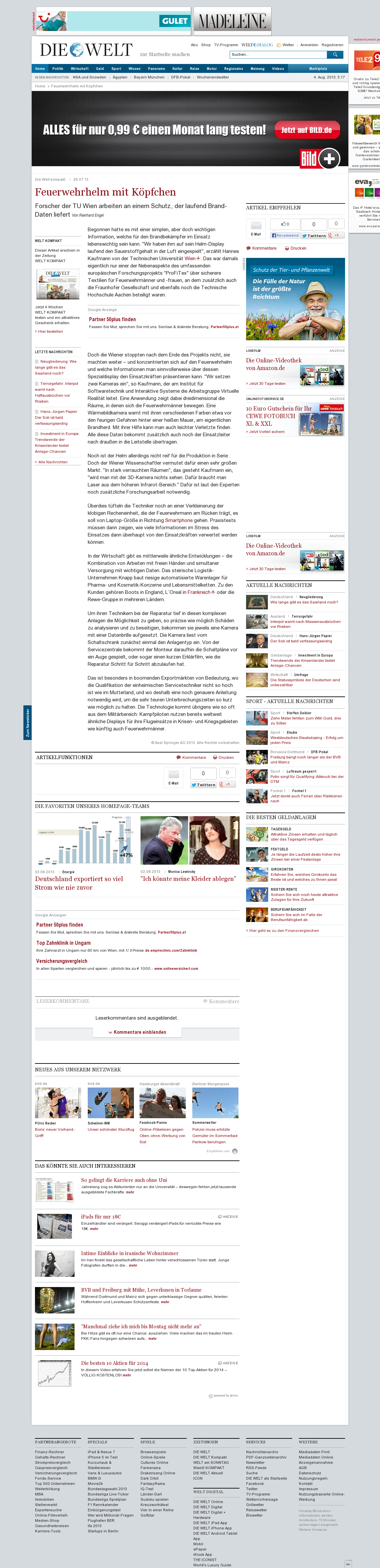 | Die Welt kompakt | Feuerwehrhelm mit Köpfchen Jul 26, 2013 | ProFiTex | Screenshot |
