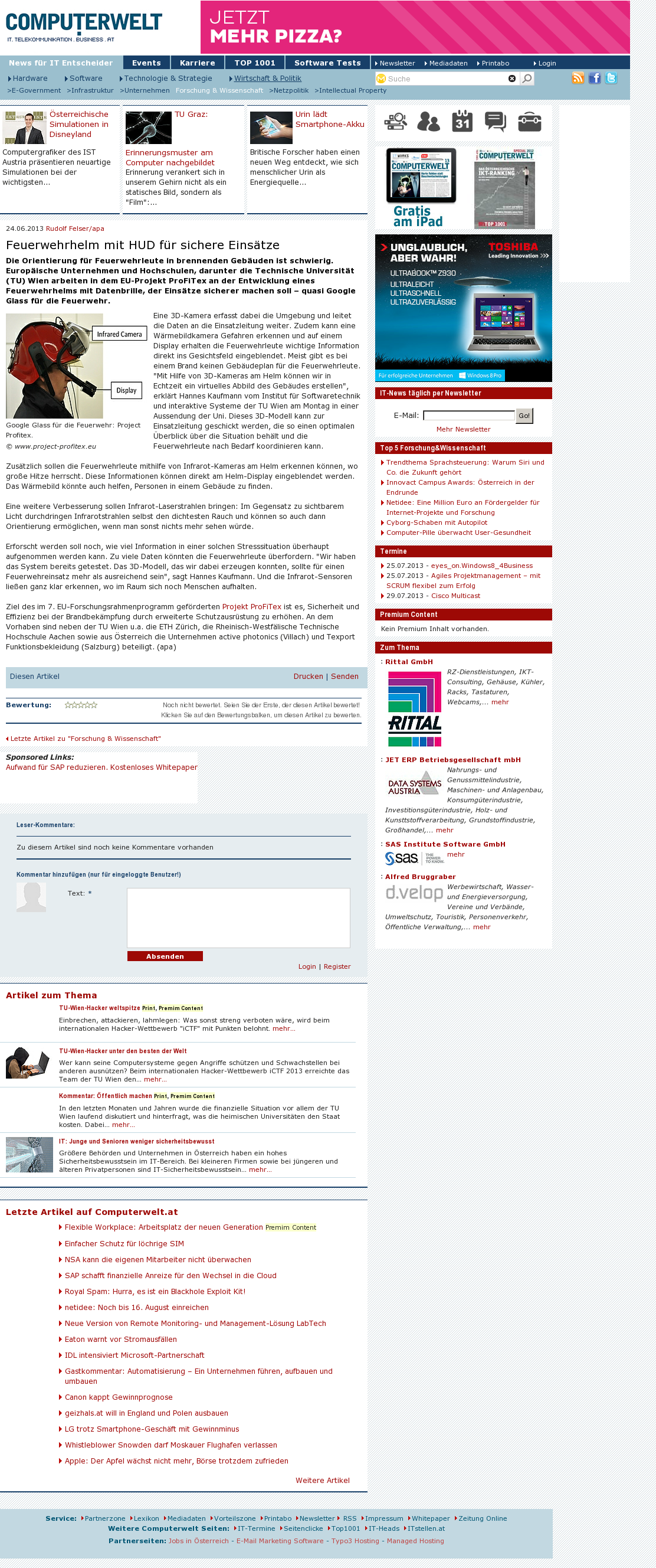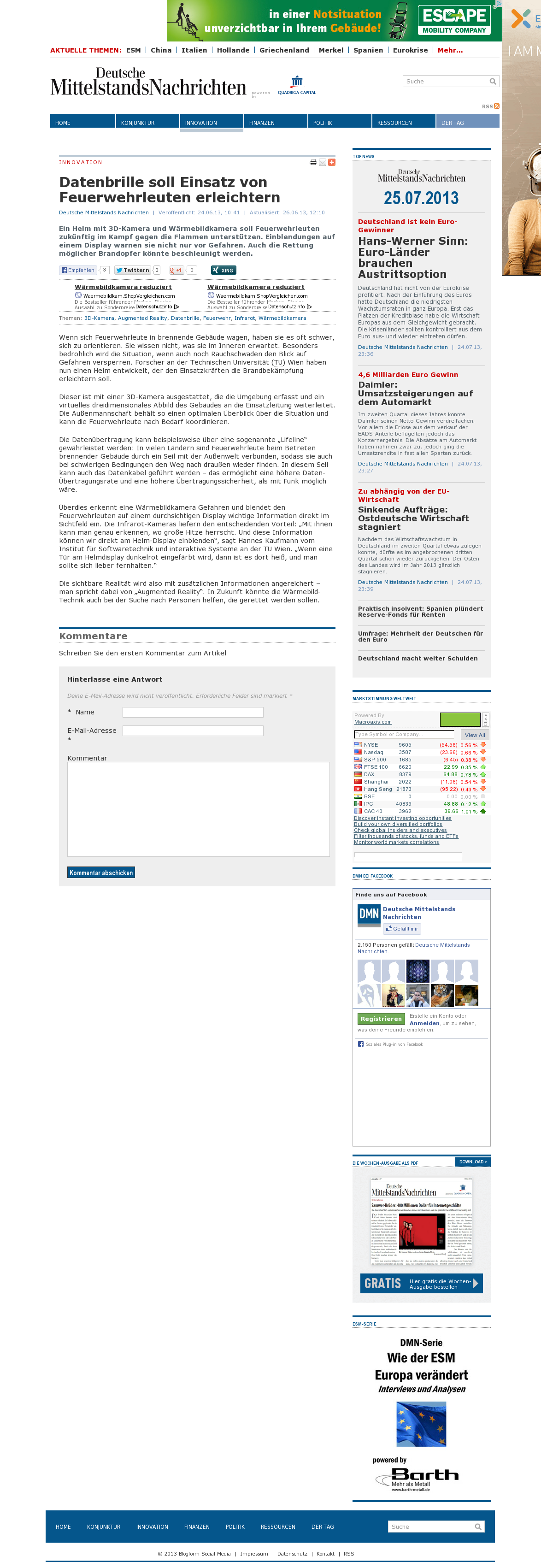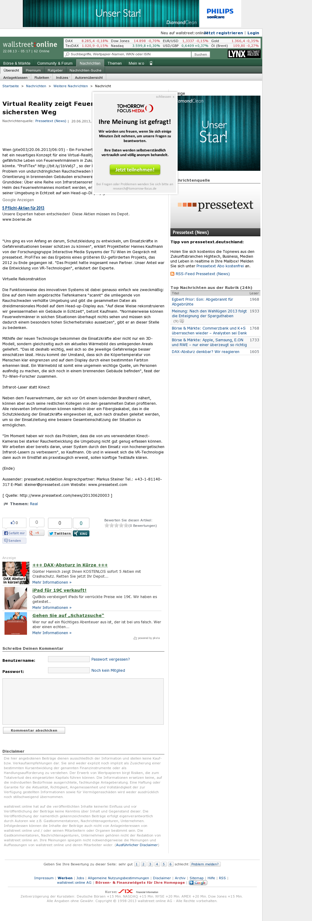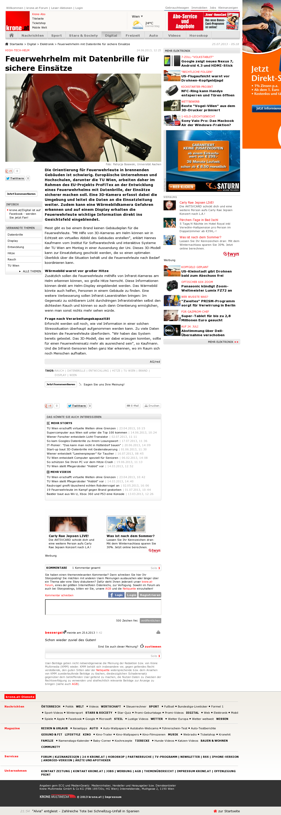 | Die Welt kompakt | Feuerwehrhelm mit Köpfchen Jul 26, 2013 | ProFiTex | Screenshot |
