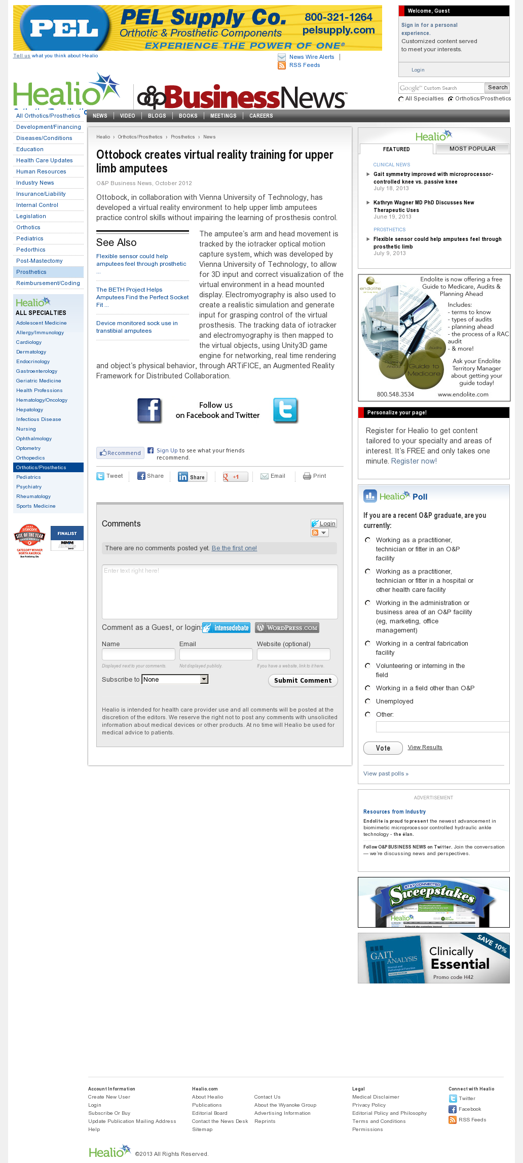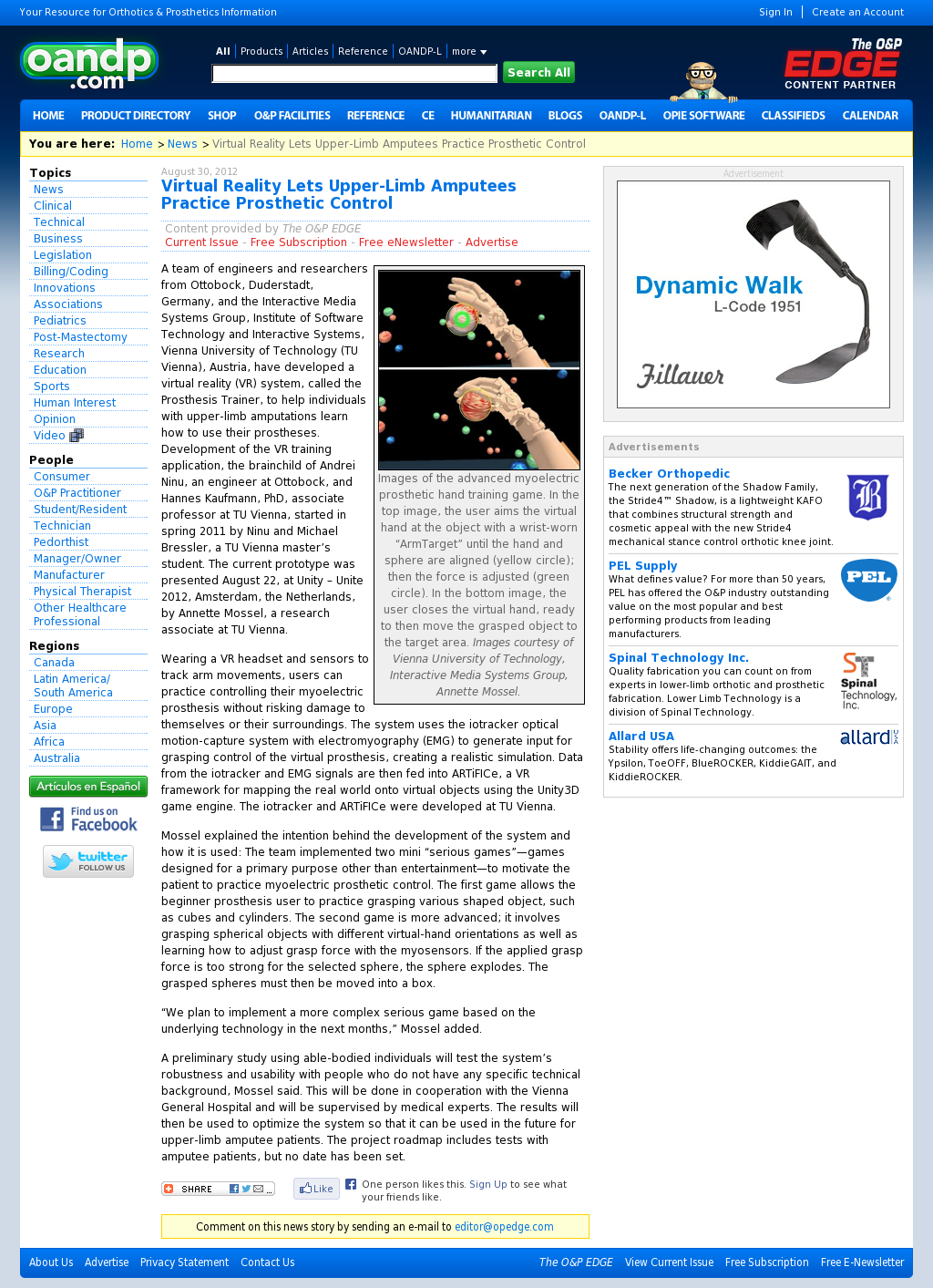 | Healio Orthotics/Prosthetics | Ottobock creates virtual reality training for upper limb amputees Oct 1, 2012 | Arm Prosthesis | Screenshot |