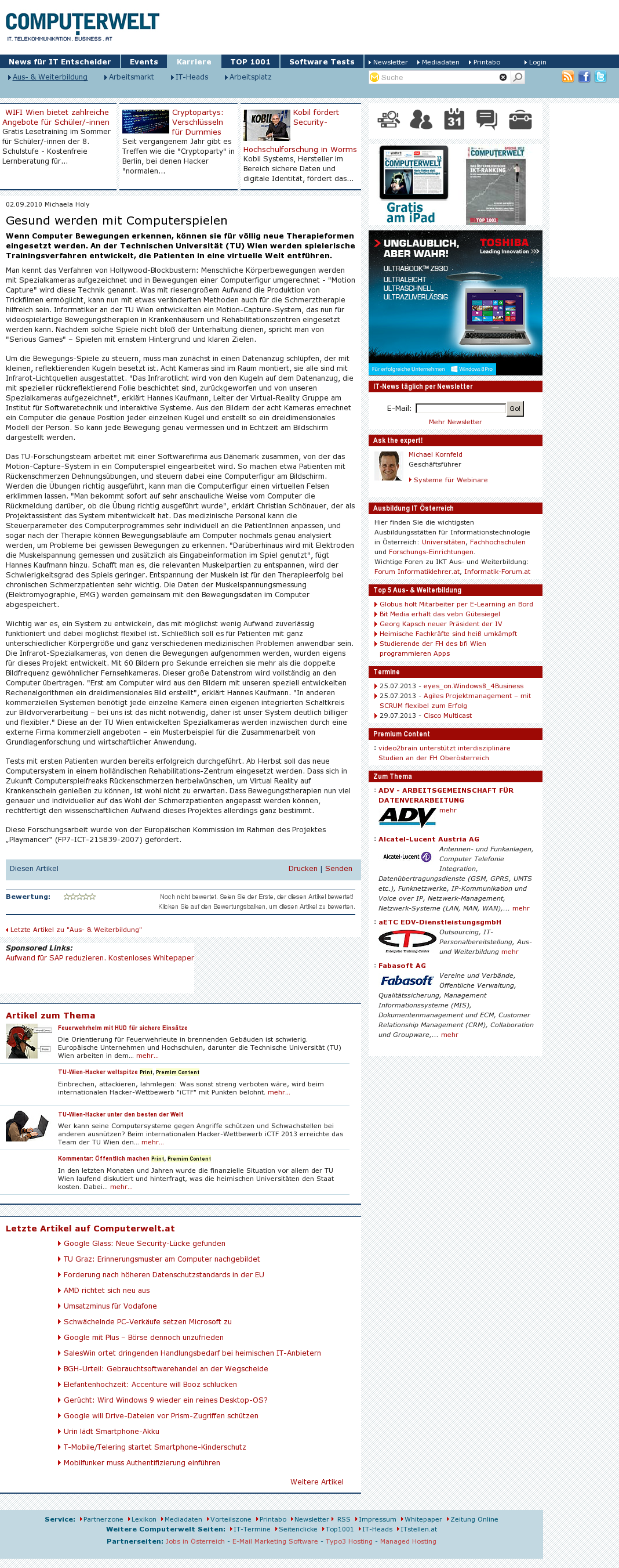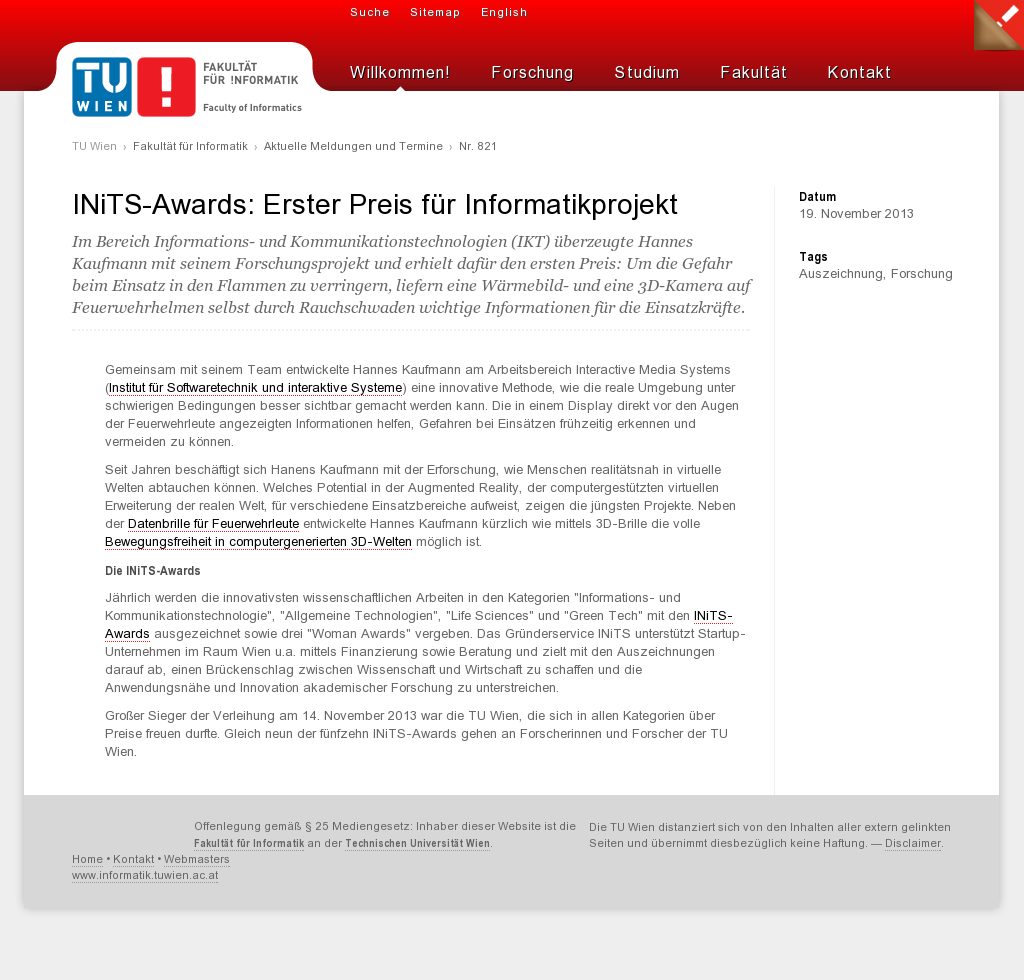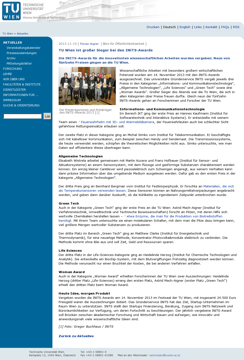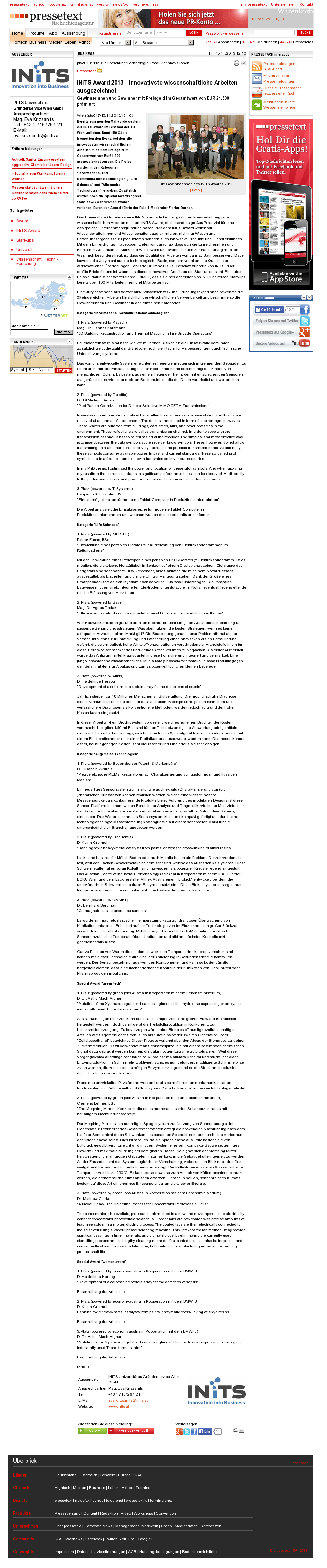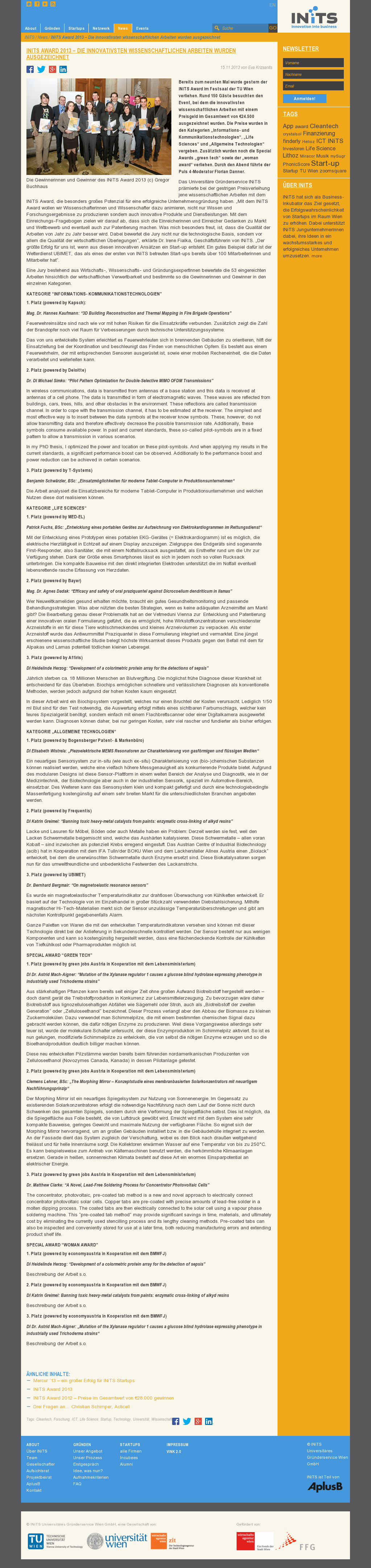 | TU Vienna | TU Wien ist großer Sieger bei den INiTS-Awards Nov 15, 2013 | ProFiTex | Screenshot |