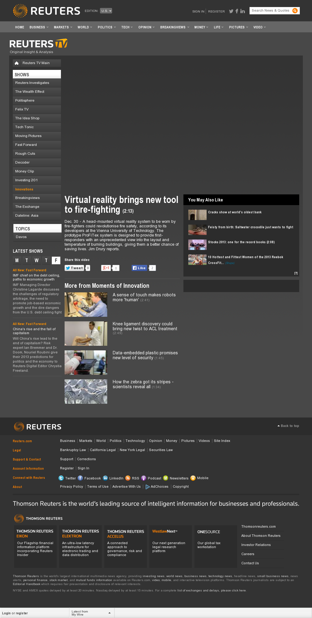 | REUTERS TV | Virtual reality brings new tool to fire-fighting Jan 2, 2014 | ProFiTex | Screenshot |