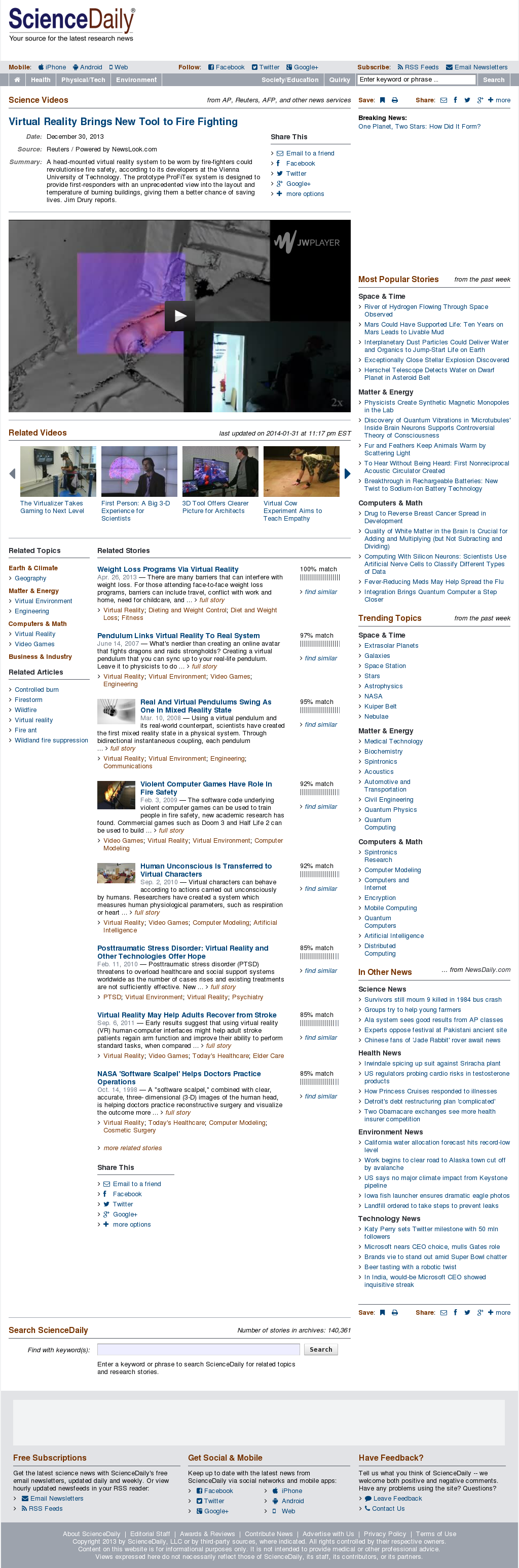 | Science Daily | Virtual Reality Brings New Tool to Fire Fighting Dec 30, 2013 | ProFiTex | Screenshot |