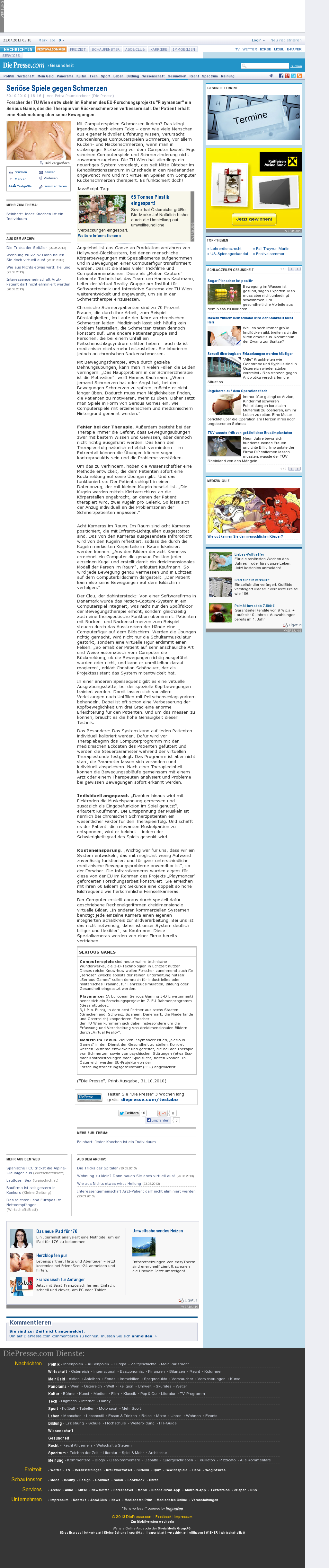 | Die Presse | Seriöse Spiele gegen Schmerzen Oct 30, 2010 | PlayMancer | Screenshot |