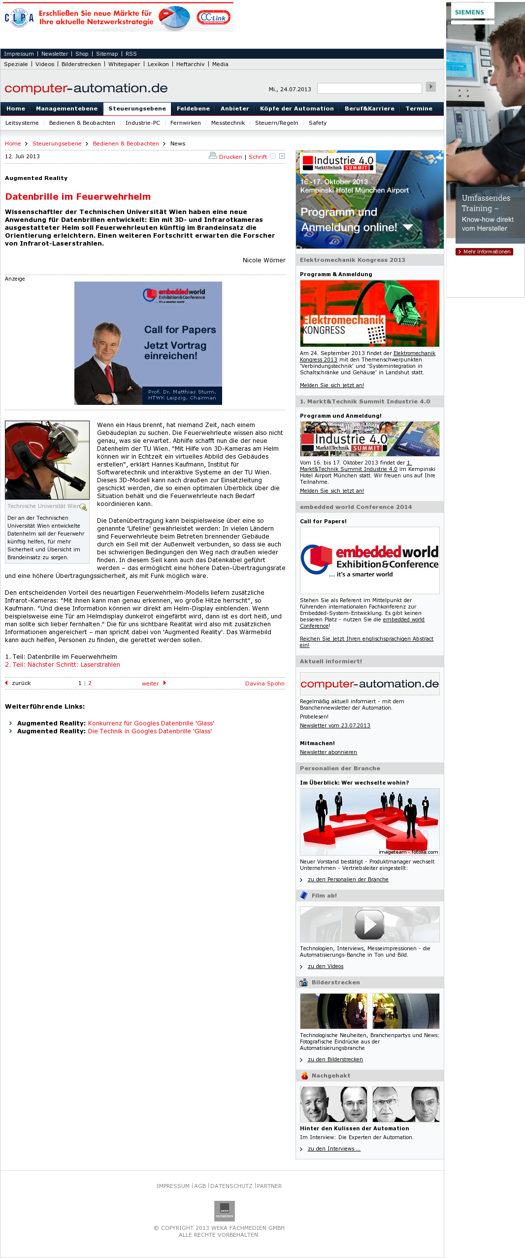 | Computer-Automation | Datenbrille im Feuerwehrhelm Jul 12, 2013 | ProFiTex | Screenshot |