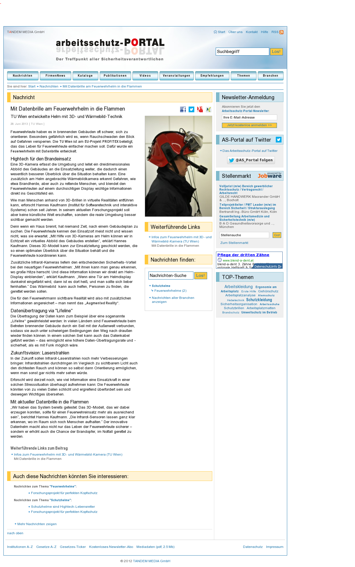 | DIE WELT | Ein Feuerwehrhelm zeigt dem Retter Verborgenes (Interview) Jul 27, 2013 | ProFiTex | Screenshot |