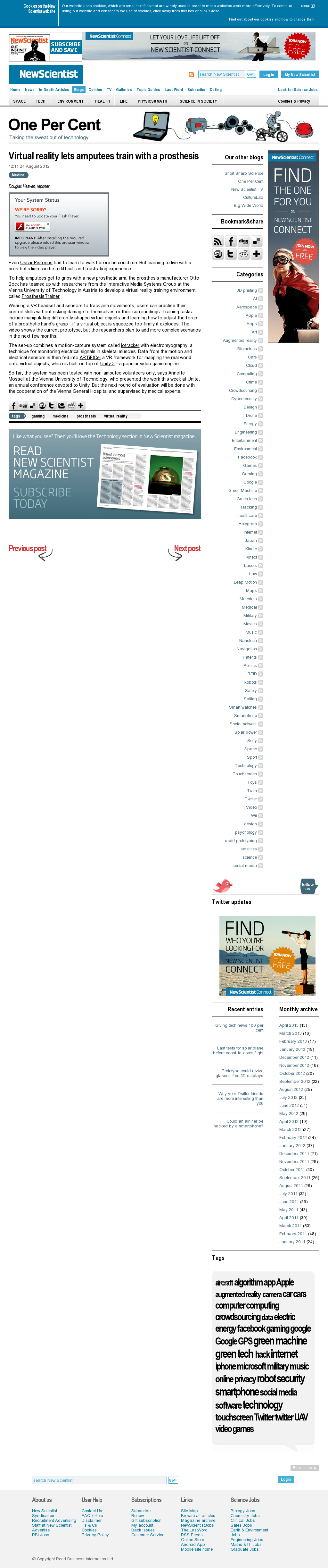 | NewScientist | Virtual reality lets amputees train with a prosthesis Aug 24, 2012 | Arm Prosthesis | Screenshot |
