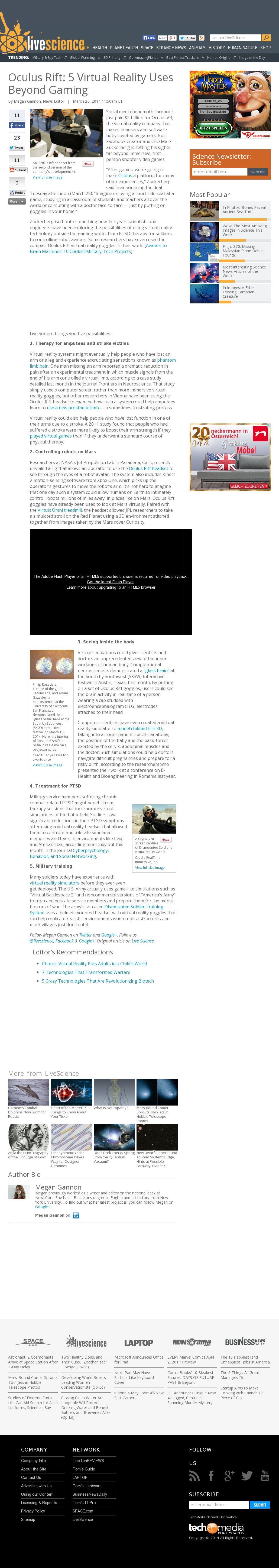 | LiveScience New York | Oculus Rift: 5 Virtual Reality Uses Beyond Gaming Mar 26, 2014 | Arm Prosthesis | Screenshot |