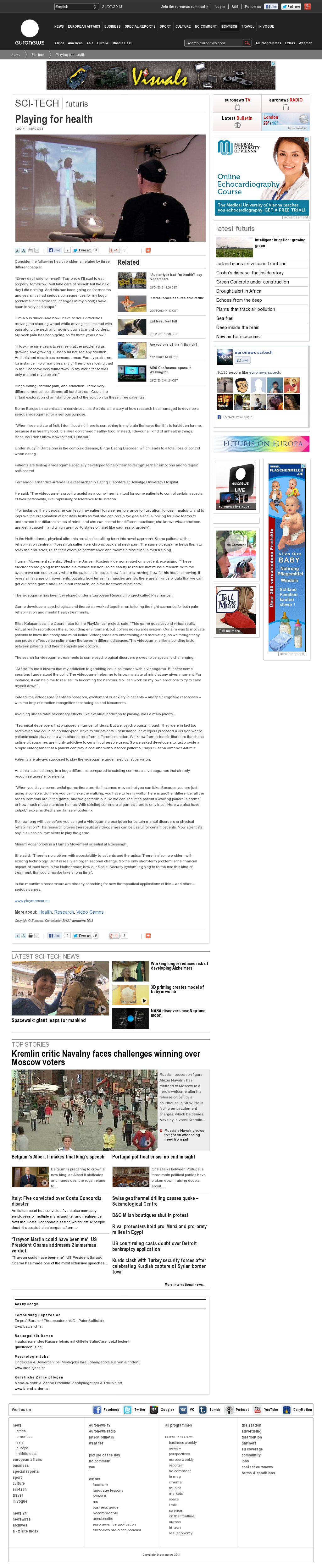 | Euronews TV documentary | Playing for health (8:40 mins) Jan 11, 2012 | PlayMancer | Screenshot |