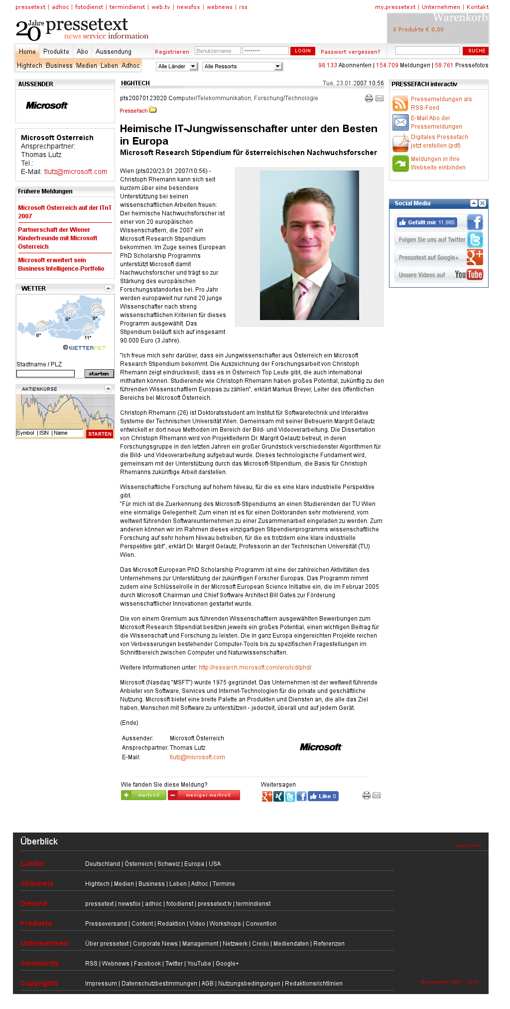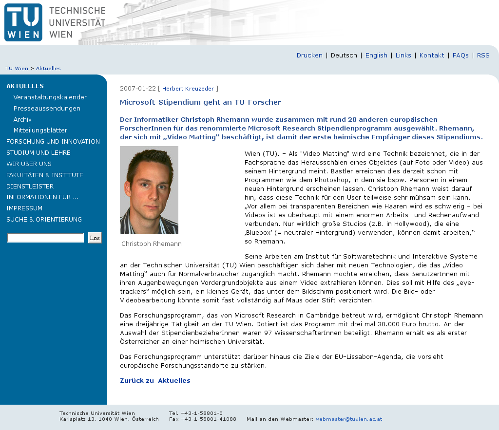 | TU Wien | Microsoft-Stipendium geht an TU-Forscher Jan 22, 2007 | ALPHAMAT | Screenshot |