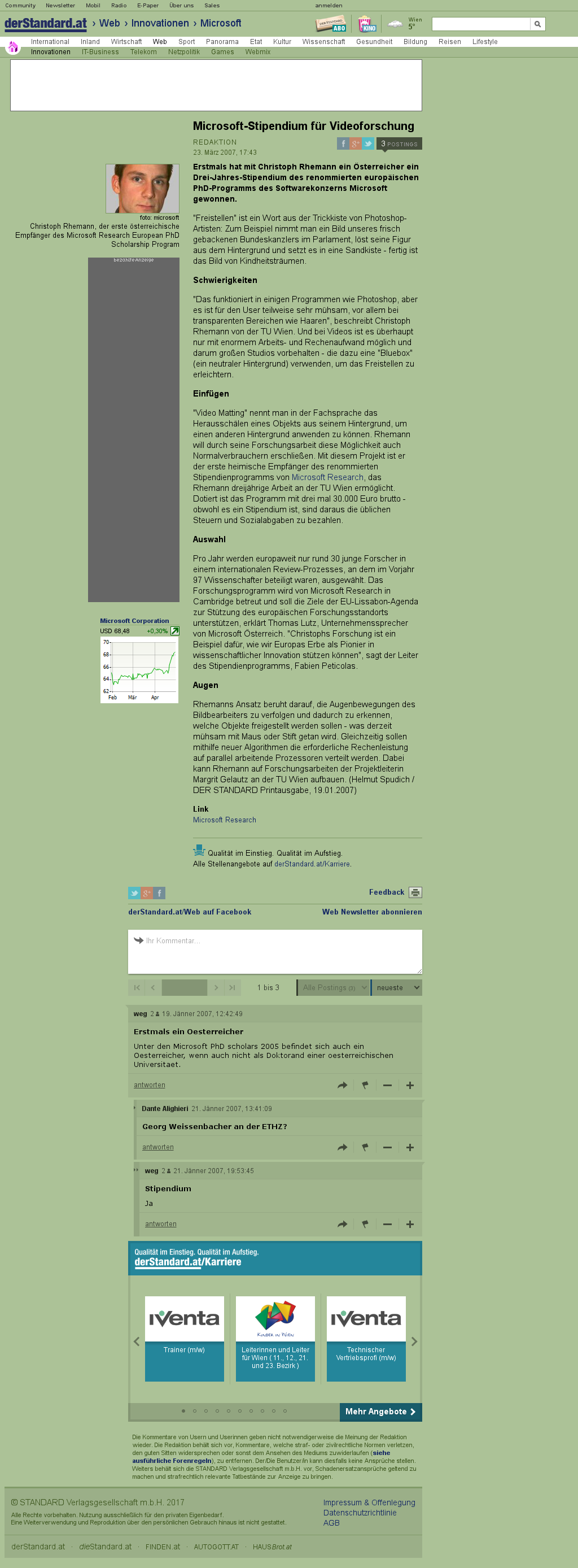 | Der Standard | Microsoft-Stipendium für Videoforschung Mar 23, 2007 | ALPHAMAT | Screenshot |