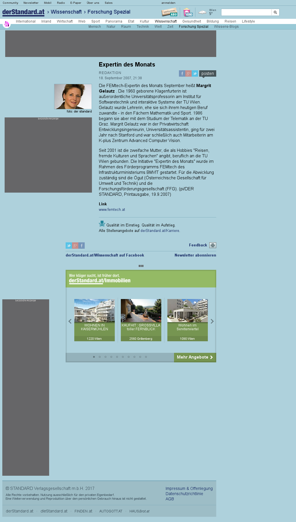 | Der Standard (Wissenschaft) | FEMtech - Expertin des Monats Sep 18, 2007 | – | Screenshot |