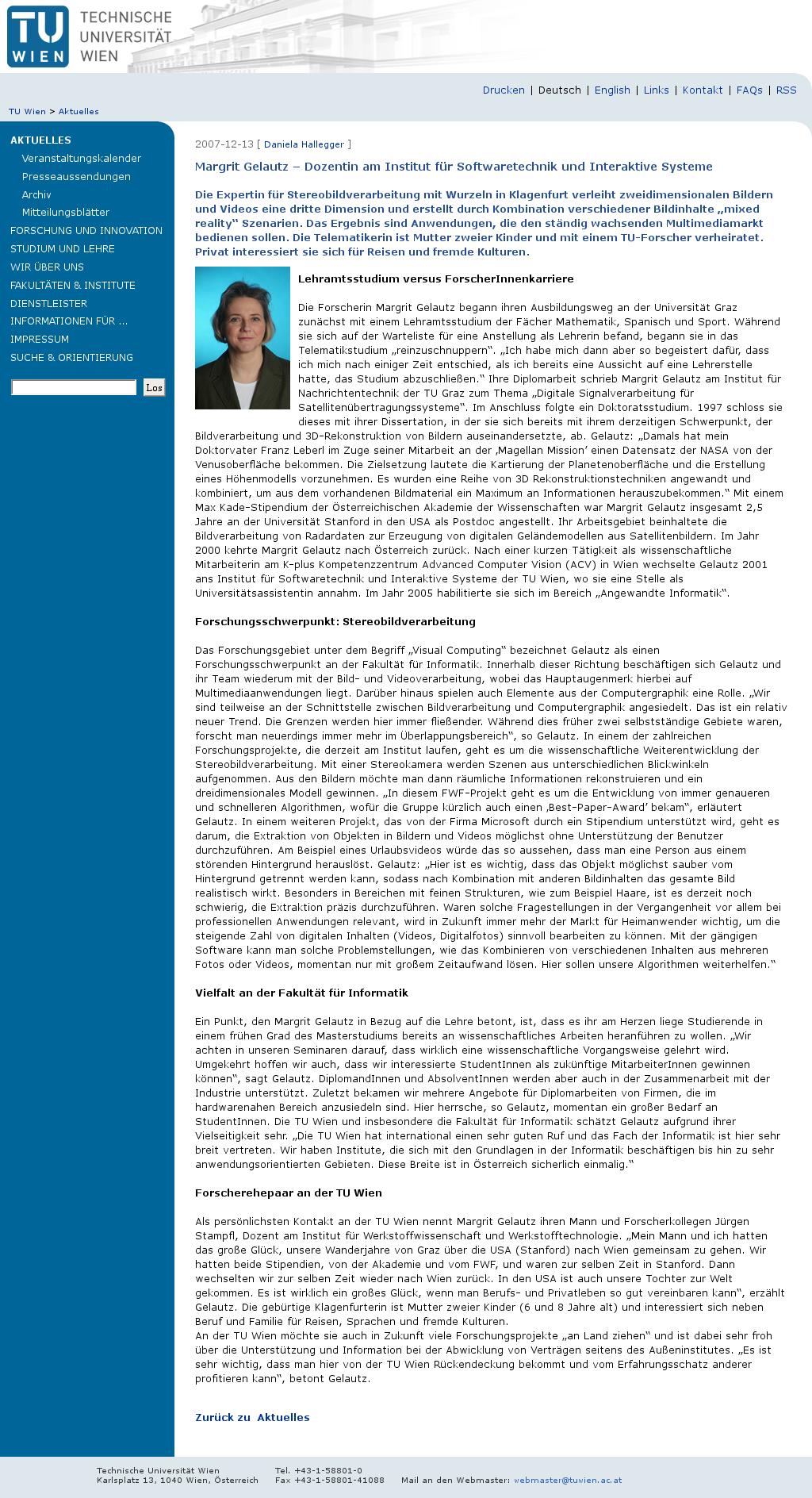 | TU Wien | Margrit Gelautz – Dozentin am Institut für Softwaretechnik und Interaktive Systeme Dec 13, 2007 | – | Screenshot |