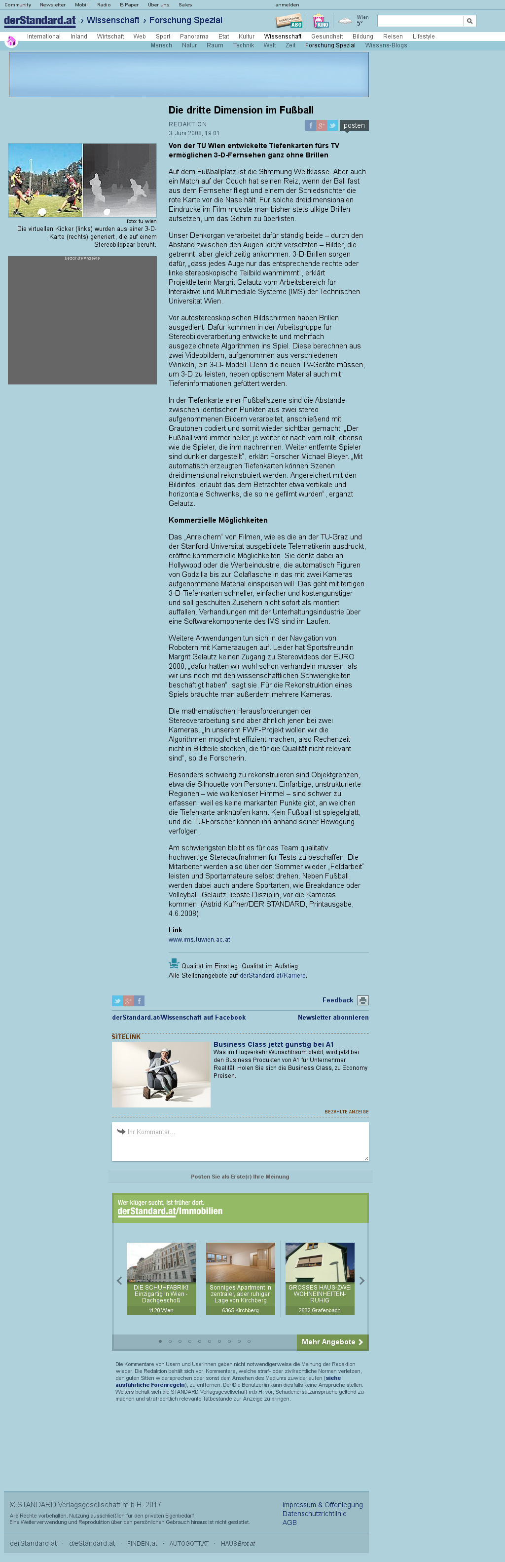 | Der Standard (Wissenschaft) | Die dritte Dimension im Fußball Jun 3, 2008 | Stereo Matching | Screenshot |