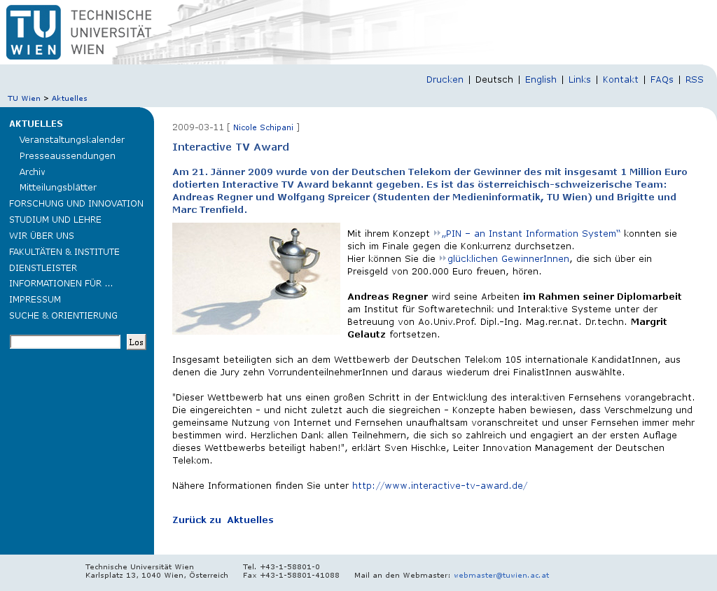 | TU Wien | Interactive TV Award Mar 11, 2009 | – | Screenshot |