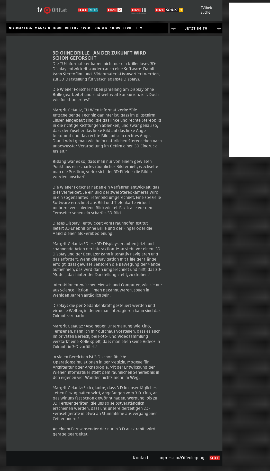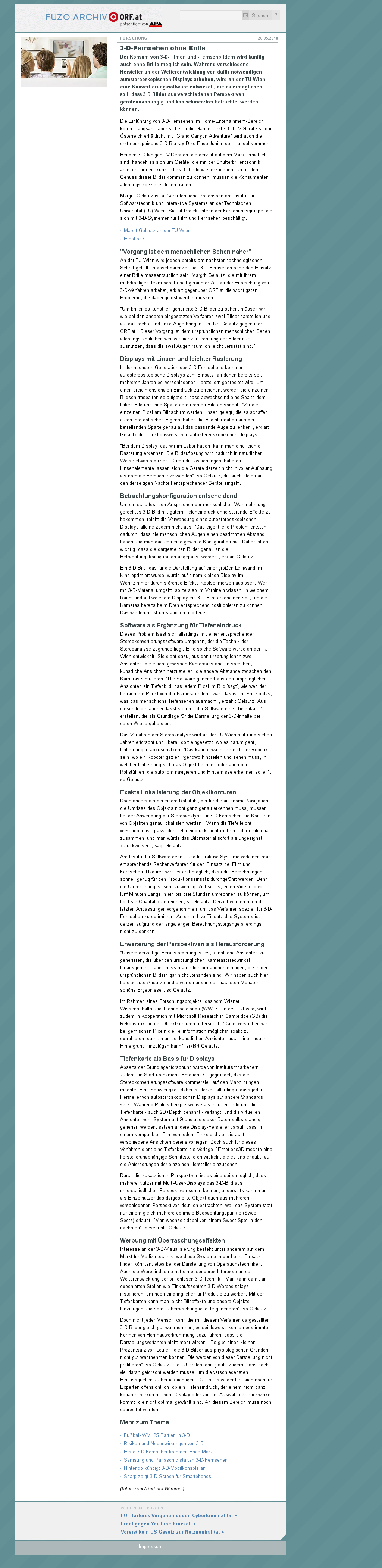 | Futurezone.at | 3-D-Fernsehen ohne Brille May 26, 2010 | 3D-TV | Screenshot |