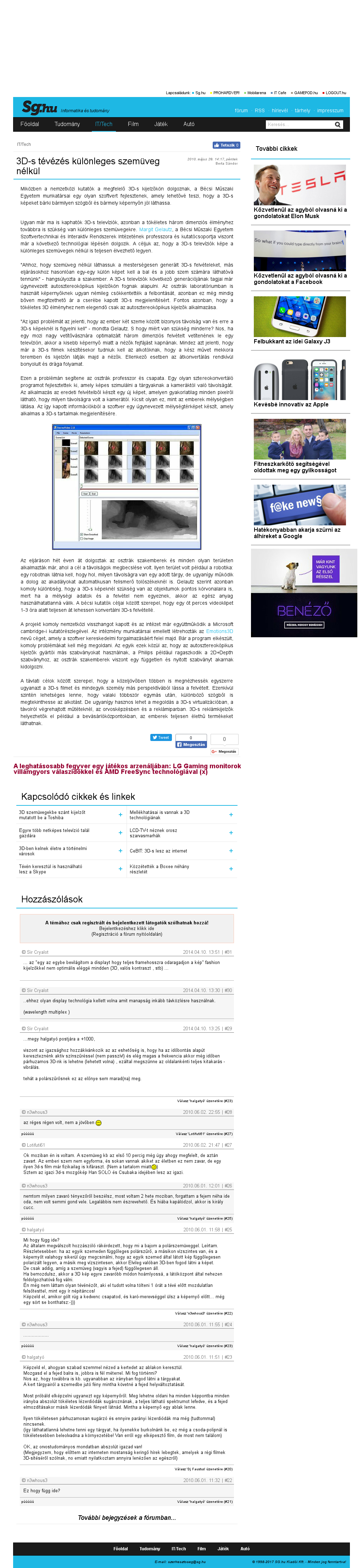 | Sg.hu (Hungarian) | 3D-s tévézés különleges szemüveg nélkül May 28, 2010 | 3D-TV | Screenshot |