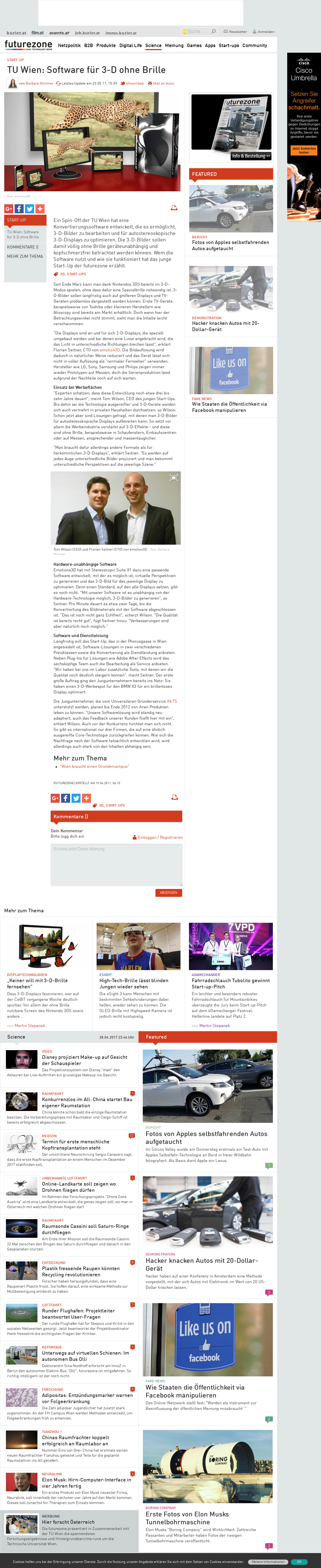 | Futurezone.at | TU Wien: Software für 3-D ohne Brille May 23, 2011 | 3D-TV | Screenshot |