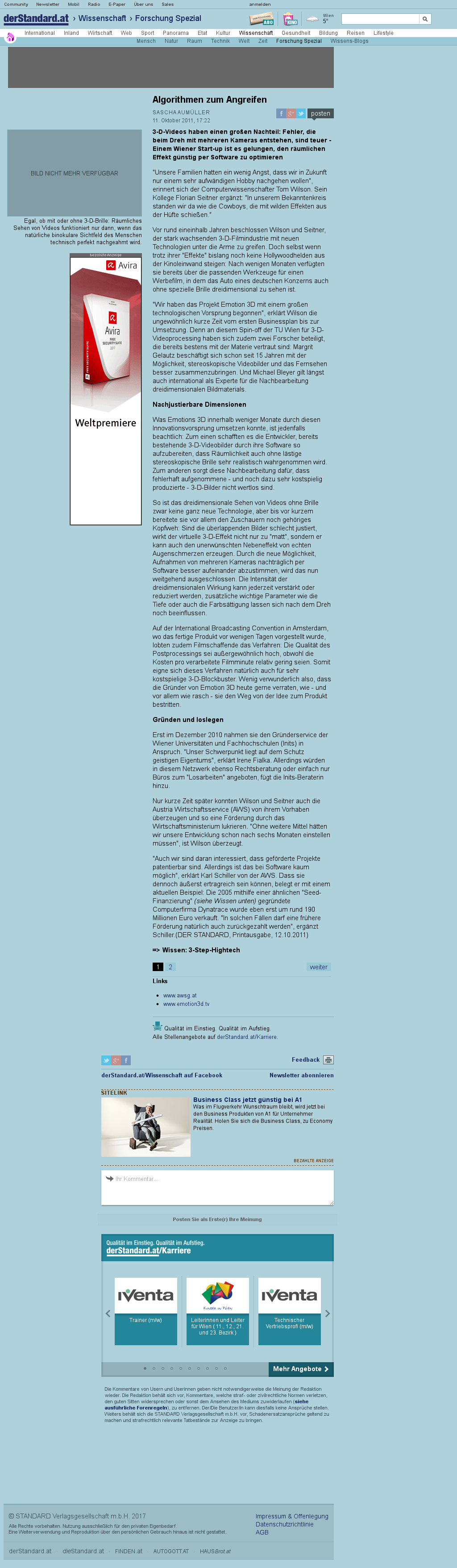 | Der Standard (Wissenschaft) | Algorithmen zum Angreifen Oct 11, 2011 | 3D-TV | Screenshot |