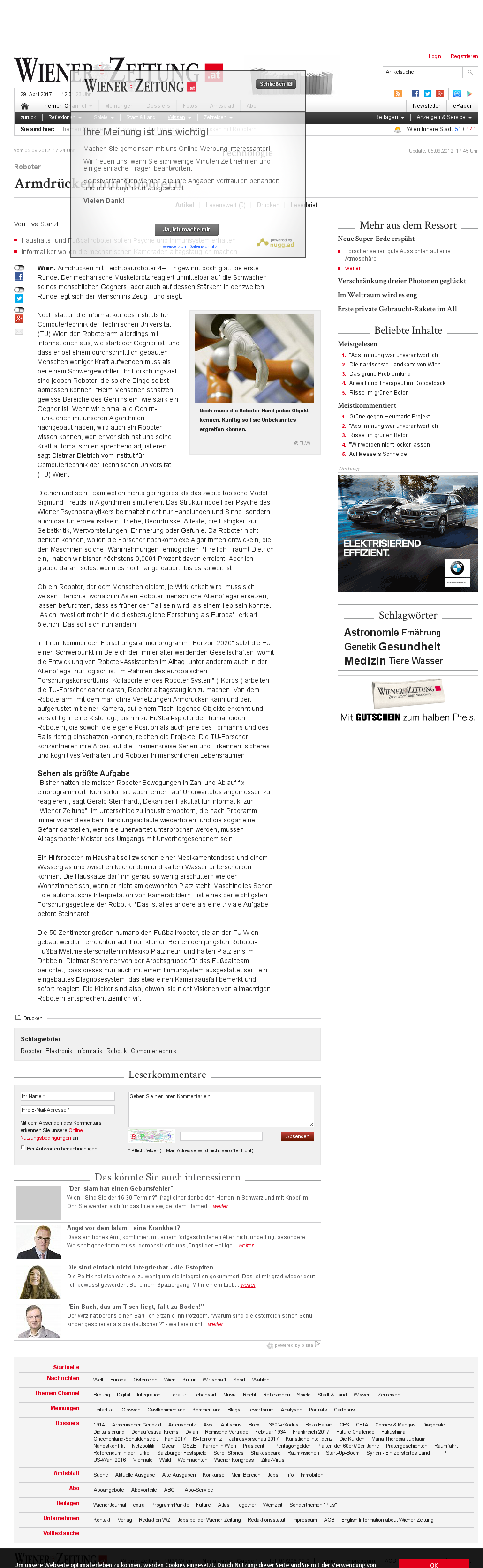 | Wiener Zeitung | Forschungskonsortium "Kollaborierendes Roboter System" (KOROS) Sep 5, 2012 | CP | Screenshot |