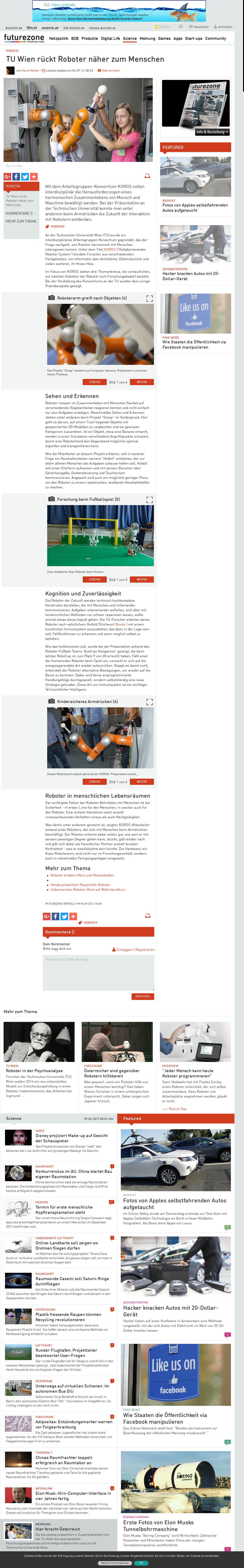 | Futurezone.at | TU Wien rückt Roboter näher zum Menschen Sep 6, 2012 | KOROS | Screenshot |