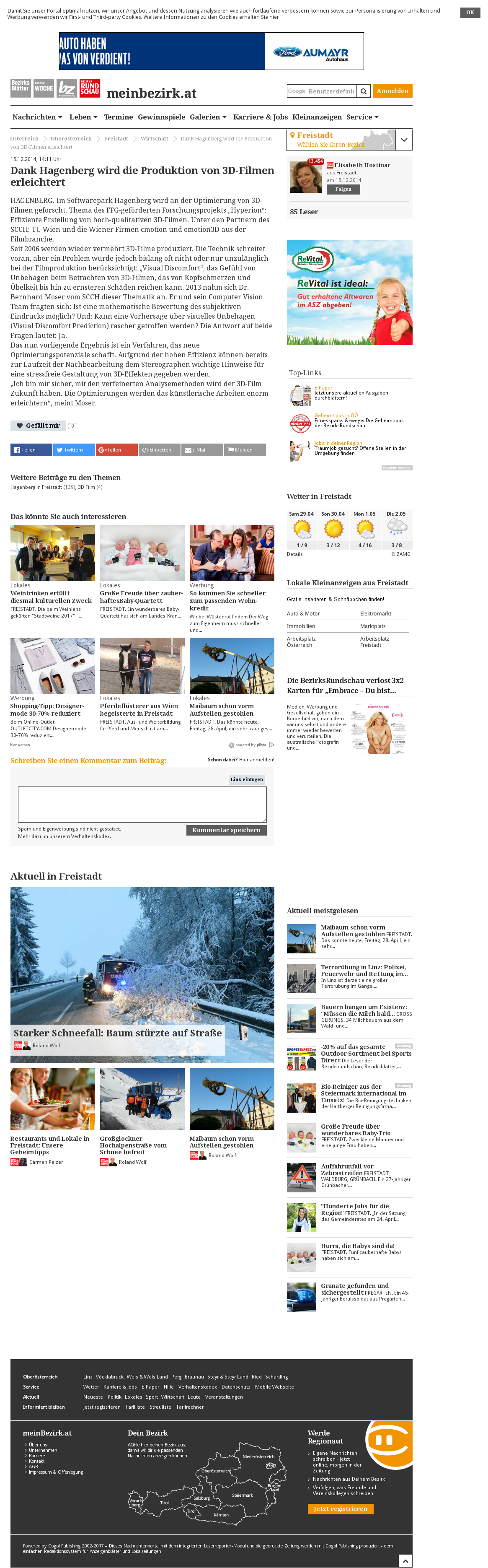 | meinbezirk.at | Forschung für 3D-Filmproduktion Dec 15, 2014 | Hyperion3D | Screenshot |