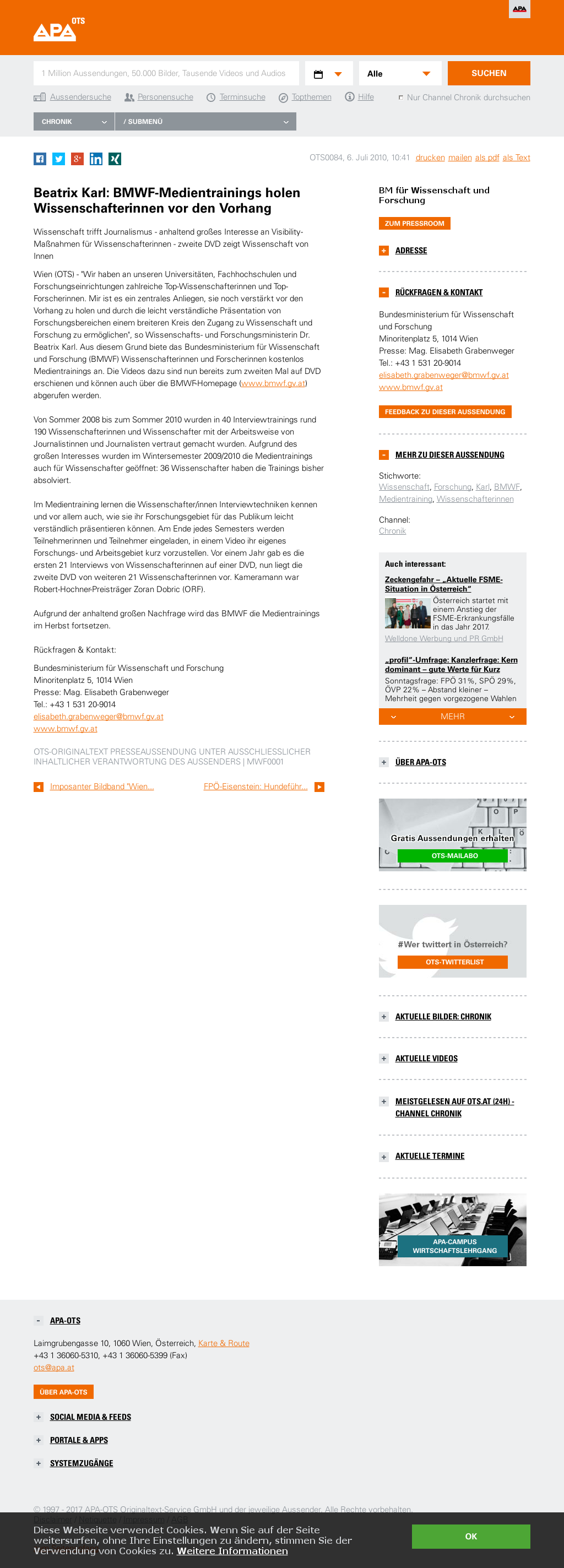 | Bundesministerium für Wissenschaft und Forschung | Visibility-Maßnahmen WissenschafterInnen - Wissenschaft von Innen Jul 6, 2010 | – | Screenshot |